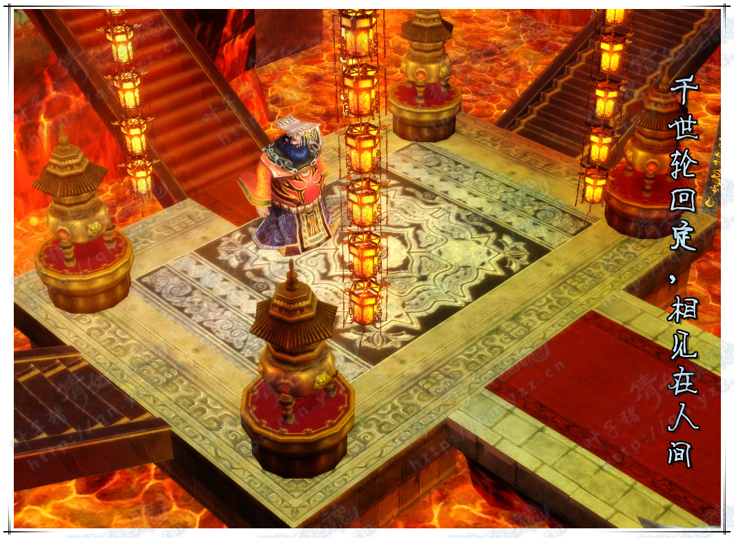 酆都大殿 酆都怒火尽连城,鬼灯幽火亦催冷。金砖红毯非幻真,阴风鬼嚎扰心门。 轮回百世情尤在,今生于此仍依然。真亦假来假亦真,虚虚实实皆缥缈。 唯世人嗟叹,怎奈这一切又是你我可了?