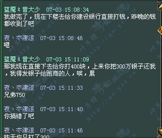 来自四区神仙居化乐天服务器,玩家曝光全服第一骗子行径,利用多个游戏ID通过改名改性别来骗取朋友钱财,遭玩家唾骂。 以下为玩家爆料的骗子ID,据玩家称该骗子一共有6个游戏帐号,通过不断的改名改性别以骗取更多的玩家: 玩家爆料的事件过程:先通过小紫或小件装备诱惑别人,可以先把货给别人然后再给他钱,骗取朋友的信任,显的非常大方,然后再发贵重物品装备RMB交易,而且不通过平台交易,需要先给钱再给货,就这样简单的手法骗取朋友大量钱财,引起不少玩家的公愤。 以下为某一事件举例,某受害玩家给打过款之后,骗子说未收到款,并世界刷屏,利用6个号反咬受害者,引起不少玩家公愤。 受害者: