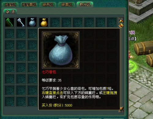 《倩女幽魂》商城增积分区,可兑换八格包裹。