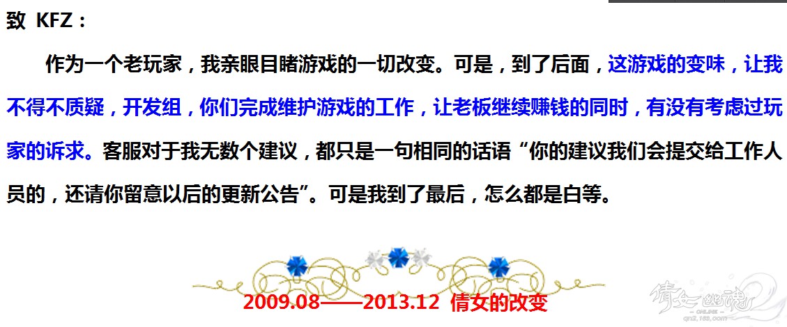倩女幽魂2老玩家吐露心声:致KFZ的一封信