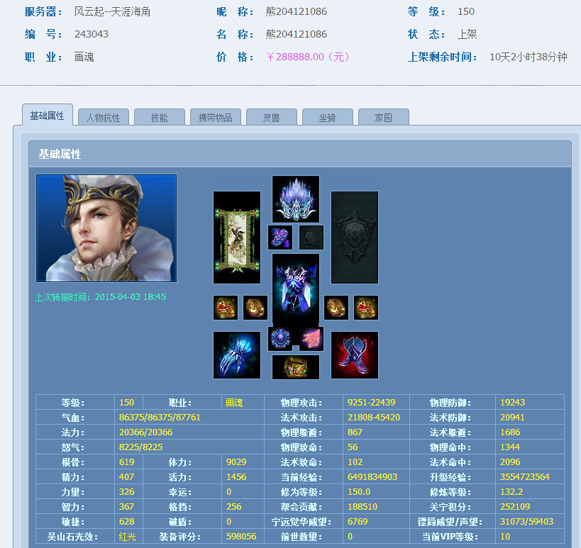 四月资料片已经开放,倩女幽魂2藏宝阁一改往日颓势,大神账号仅有极少存量,看来资料片的新玩法吸引了众多玩家的回归。下面小编挑出藏宝阁上十大职业最Top的大神角色分享给大家! >>>>>点击进入倩女幽魂2藏宝阁角色搜索器<<<<< >>>>>倩女2藏宝阁大神盘点第廿一二期:大神账号Top10 No.10 潇湘水云 萌萌哒 150级侠客 装评41万 售价5.6万 在藏宝阁乃至装备榜上都非常稀少的侠客,却是比武不可或缺的主力之一。此号3级悟则圣+4级善根生,满包补天,灵兽技能等均已具备,买回来就能玩。 No.9 烽火佳人 容思瑶 148级方士 装评54万 售价12.9万 最近藏宝阁上的方士越来越少(想3必都已经转成了画魂了吧),此方士毕业五级套,但是背包未见补天石套装,仅仅一套敏捷心和钟。抗性与忽视抗合格,在烽火所在大区是一个不错的方士,直接玩或者转职两相宜。 No.8 忆江南 没辙ぺ 150级甲士 装评55万 售价14万 10万血,3万双防,近4万攻击,标准的大神甲,虽无家园,但是传家宝尚在,目测可以成为非常优秀的转职底子 No.7 豪情痴 小段 150级异人 装评58万 售价14万 红光双手异人,高攻高血防,但并不是主流的敏捷型,补天与幸运法宝齐备,还有12级家园的成品传家宝,属性优异。 No.6 神雕侠侣 傾慕一絲心扉ゞ 147级偃师 装评51万 售价15.5万 最近大姨妈手传遍倩女,低调许久的偃师大有抬头之势。该偃师从刀客转职而来,可惜暂时并没有带偃师补天石,不过传家宝已经造好,4+5级石之灵套下血量较差,其他均属优秀属性。 No.5 烽火佳人 笑ω笑 150级医师 装评58万 手机18.6万 神壕奶妈,血防抗性均属极品,身具多重切装,保证抗性和技能等级,要打比武PK的最佳角色 No.4 烽火佳人 ぃ缥缈っ 147级刀客 装评56万 售价19万 红光刀客,抗性完美,也是身具多重切装,单挑杀神名不虚传,缺点在于没有家园,但是有两套传家宝,装备堪称齐全。 No.3 烽火佳人 biubiubIu→ 150级射手 装评65万 售价25万 大神射爷,全身神兵培养4级,五级套近5万攻击见谁秒谁,还是超难得的法躲系,生存方面也有一定的保障,轻松教对方做人! No.2 烽火佳人 biubiub1u→ 150级魅者 装评52万 售价28.88万 紫光魅者,别看只有52万,那是由于武器仅仅是无妄想的原因,全身5级宝石,强控与抗性一流,满背包的补天与切装,给力酣畅淋漓的控人享受。 No.1 天涯海角 熊204121086 150级画魂 装评60万 售价28.88万 现在的第一太子,双手画魂,4万5法攻毁天灭地,身具物躲、法躲、元素抗、控制抗多套切装,任何对手都丝毫不惧!简直是逆天的存在啊有木有?