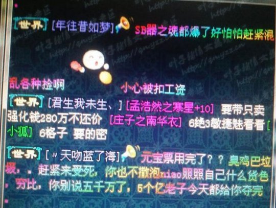 【本文图片来源官方论坛,由叶子猪倩女幽魂整理,未经授权禁止转载,侵权必究】 近来倒春寒,原本回暖的天气一夜之间天降大雪,气温陡然回落,众人纷纷裹起了棉袄 此等异样天气,着实不同寻常,于是小编掐指一算,竟是有妖孽作祟! 此等气焰极其嚣张之人是谁? 这一番话,竟有“此山是我开,此树是我栽,要在此服活,需得进帮来!” 那雄霸天下江山一统的霸气! 甚屌! “天吻蓝了海”大神在连刷三波大喇叭之后 怒吸仇恨值! “年往昔如梦”表示不服:老子商店五千多万等你夺! 天哥自然要怼回去。 声称自己卡里有七十万RMB! 大有一战的念头。 “安徽推土机”也来掺和了一脚:来试试,今天你怂还是我怂~ 如今已经有两位大神开始和天哥杠上了。 “樱纱”表示不屑:70张姨妈巾? 吃瓜群众“羽霄”大神也是一个大喇叭,跟了上来。 语气很是正经,不偏不倚,句句有理! 这位应该不是来起哄的。 转眼年神和推土机没了踪迹。 只剩下女神“樱纱”和天哥用大喇叭互怼。 作为一个不明真相的吃瓜群众 小编虽然也不太喜欢天哥那嚣张的模样 但是樱纱这么侮辱对方的媳妇 就有点说不过去了 江湖规矩 骂人不问候母系家族 是个人都明白为什么。 年神回来了! 难道刚刚约出去打了一架? 天哥也是忍不住了。 开始话中带脏字。 从最开始的五千万,升级为5个亿。 犹如霸道总裁附体! 来了个新面孔“溪枫” 诶!骚年 你这样就不对了啊! 装13 是面子工程! 你怎么能当面戳穿人家呢? 天哥震怒! 大胆刁民! 竟敢触怒本君! 老子今天就要杀鸡儆猴了! OMG 大佬 叶良辰甘拜下风! 最后一句话让我想起了 “女人,你成功引起了我的注意力。” 这霸道总裁范都是一样一样儿的! 这边论坛也是笑爆了。 前排瓜子小贩也跟着大赚了一笔! 这真的不是叶良辰! 叶良辰已甘拜下风! 说句可能被大佬们怼的话 有钱就去刷跨服金喇叭啊! 立马把那些小妖精震慑的找不到北了! 了解更多相关信息,请前往http://qn.yzz.cn/ [编辑:犀利摇]