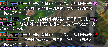 五一刚过,一位喜欢挖图的玩家就在论坛哭诉,冥凤临世一共挖出了17本绝技,自己却一本没挖到!小编表示非常理解这位玩家的心情,因为小编挖出来的全是封妖瓶QAQ