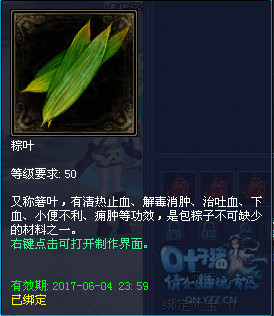 赠粽送情 活动时间 测试开放:2017年5月18日12:00—2017年5月19日23:59 正式开放:2017年5月26日0:00—2017年6月4日23:59 参与条件 角色等级≥50级。 活动奖励 端午节礼券、宝匣钥匙、高级吴山石鳞、传世丹书符箓等。 活动介绍 巧大娘包的粽子可是一绝,大家都喜欢她包的粽子。可吃粽的人太多,巧大娘实在招呼不过来,无暇给各大掌门制作粽子给他们送去。你心灵手巧,自告奋勇接了这活儿。 各大掌门口味不一,巧巧那有制作各种口味粽子的材料,购买材料后可制作各类粽子。巧大娘把这个重任交给了你,可不要令她失望! 《新倩女幽魂》端午专题——巧大娘委托重任