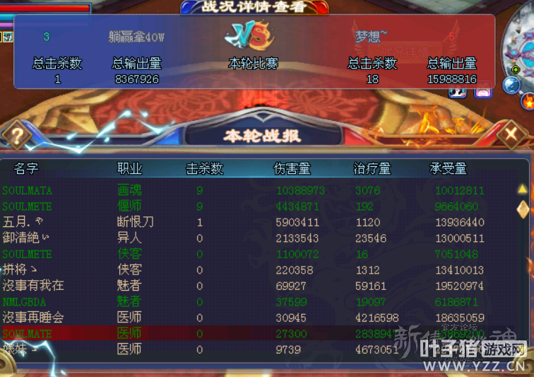 《新倩女幽魂》首届无差别赛事“全民争霸赛”在经过一番激烈的角逐后已诞生出64强,8月17日20:00、21:00、22:00,首轮小组赛开启,所有64强战队分为16个小组,小组内战队在三个整点分别进行匹配对战,最终每组积分排名第一者晋级16强,预祝64强战队在小组赛中脱颖而出。 准备好高喊6666了么!16强最后席位争夺生死战! 小组赛64进16第十三组第一轮,梦想~VS躺赢40万。 第一场 2V2 双方战队都选择了画魂和医生的配置,在同等配置下躺赢的队伍在手法上更熟练些。 躺赢队伍赢下第一场。 第二场 3V3 在比赛过程中能充分体现出战甲异人双输出的优势 梦想队伍团灭,躺赢队伍拿下第二局。 第三场 3V3【第二次】 躺赢队伍画魂被对面杀死,然后刀客被放倒,奶妈救起画魂,自己被杀。 最后画魂被杀,团灭。梦想队伍拿下本场。 第四场 6v6 双方配置如图,双奶一侠一魅,断恨刀异人或者偃师画魂刷人头。 在这场比赛中,梦想队伍展示出了极好的配合能力, 在击杀数比分上 遥遥领先,拿下第本局。 第五场 6V6【第二次】 双方并没有对配置做出调整,但是躺赢队伍并没有表现出力挽狂澜的决心和行动力, 梦想队伍的配合依旧666,完胜。 第六场 车轮战 第一场,躺赢队伍的战魂甲VS梦岛队伍的刀客 战甲被晕,刀客分身芒刺,拿下第一局。 第二场,躺赢队伍换成了异人,在冥凤和一群小弟的助力下, 搬回一局。 第三场,梦想队伍也换成了异人,万妖宫的内部之战。 招冥凤,上石化,打失明。梦想队伍赢回一局! 第四场,躺赢队伍派出了断恨刀出战 在经历了一场追逐战之后,梦想队伍赢下第三局,总比分3:1赢得车轮战的胜利。 最后,感谢每位参赛小伙伴的努力 更希望下一次还能遇到如此精彩的比赛!!! 更多精彩内容,尽在叶子猪倩女幽魂。 [编辑:辰辰]