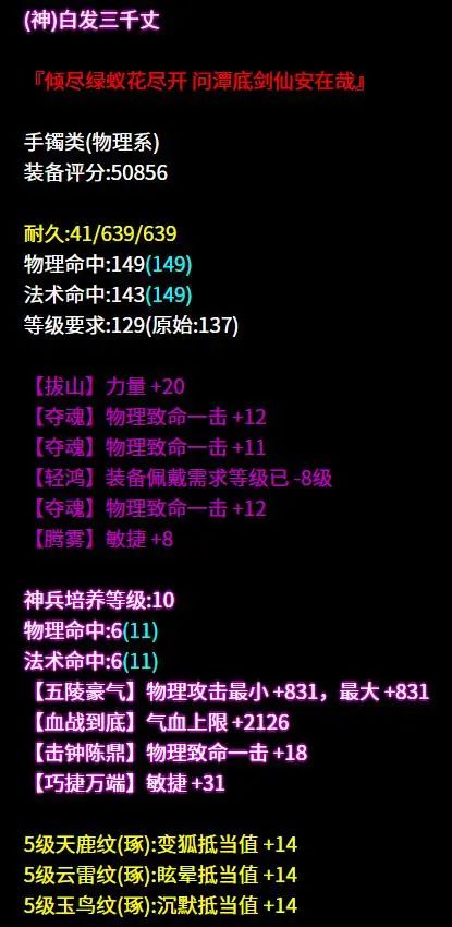 倩倩和姥姥今日打赌 本倩今日能关宁首胜 赌注是洗一周的碗 鬼鬼祟祟昂首挺胸准备开启今日关宁 不好!眼尖瞄到对手是一位大佬 本倩果断选择重开! 救命!怎么反而遇见一位更厉害的偃师 昵称:思君不急. 职业:偃师 等级:129级 区服:[独步天下] 帮会:星河ˇ (以下数据更新于梦岛2025.6.30) 逆天轻鸿+不修+最大+破盾 +物理致命+物理攻击+沉默抗 +医师职伤的137双手偃甲 到底是怎么做到的 八个词条八个不同 却没有一个废词条 七绝六法躲的布盔 哎!骗人的吧! 我不是法系天才吗! 为什么,为什么 大大在我的大招之下还能毫发无损 七绝轻鸿+五法躲的137金属甲 搭配五级善根生 别笑,你来你也过不了第二关 你问倩第二关是什么 是在三秒内成功击中大大 六绝轻鸿+双物理致命 +力量+穿云手6 以前是讨好型人格 现在已经调理好了 一边讨好一边问大大 凭什么用穿云手揍我 逆天五敏+物理命中的手套 带那么多敏捷干什么呢 没用的,真的没用的 你不带着这些敏捷也一样力压对手 所以少侠,要不把这无用的敏捷给我吧 六绝五法躲+物理命中 一键查询冷月心的精神状态 查询中...系统出现故障... ¥……%¥%#¥&* 少侠,谢谢你 直接把冷月心整崩溃了 六绝轻鸿+四法躲的137鞋子 在三界跑外卖也有半年多了 第一次遇见如此合心意的鞋子 其实倩倩的意思是 您愿意忍疼割爱吗 七绝三物理致命+双敏+双力量 心跳比我先认出你 是你!那个在关宁一招了解我的戒指 如果再来一次 倩一定躲得远远的! 七绝三物理致命+三力量 你可能不认识我 但你或许认识一招就让我躺倒的少侠 比如这位偃师少侠 就是其中之一 六绝轻鸿+四物理致命 +力量的137手镯 手镯兄,你比我有实力 倩倩129时全身都没一个轻鸿 你居然独占一个,佩服佩服 六绝轻鸿+三物理致命 +敏捷+力量的137手镯 给倩倩干哪来了 这不是我配看的频道 回家吧采臣我们一起回家吧 七绝轻鸿+三力量+物理致命 +物理攻击的135挂饰 乾坤袋,你在对我进行什么服从性测试吗 我看到别人拥有这样的挂饰 真的会眼红的啊啊啊啊啊 六绝五法躲的护心镜 听说你们在找法躲大神? 来看这里来看这里! 铛铛铛!少侠闪亮登场! 这位129级的偃师大大走的是高伤法躲流。武器方面逆天轻鸿不修最大克医137双手偃甲,配合穿云手6项链与各种轻鸿高伤137首饰,输出绝对够惊人,连击直接打出超高伤害,对手要小心点了~ 防具上六法躲布盔与轻鸿五法躲137金属甲都足够亮眼,高敏手套进一步提升躲避命中,是个超级灵活但秒人不手软的偃师大大! [编辑:月光下完美]