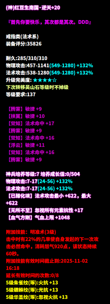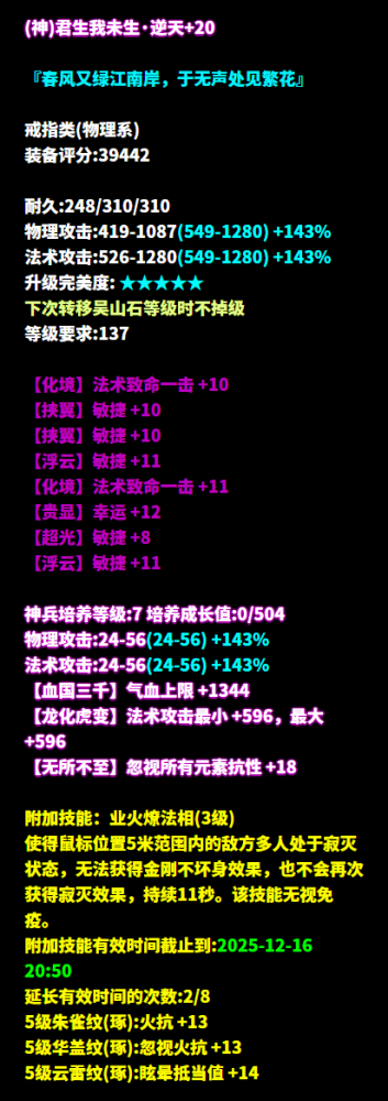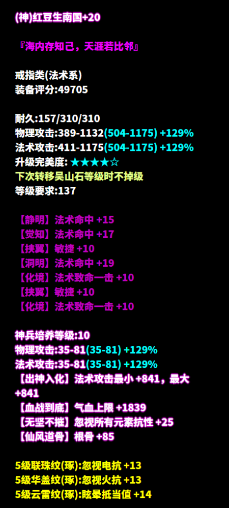 节气今朝逢大雪,清晨瓦上雪微凝。周日正逢大雪时节,不知少侠们所在地天气如何,注意保暖呀~听闻大雪时宜烹茶煮雪,倩倩自然也顺时随俗,邀请亲朋好友一起围炉而坐,煮茶论英雄! 大雪封家门,围炉话桑麻再幸福不过,可没想到聊着聊着大伙就聊到了最近三界少侠的神级首饰,一个个几乎全是逆天,好家伙,给倩倩的心都聊凉了几分,本脆皮苟活又多了几分难度! (来源:神雕侠侣-星时.丷 ) 逆天四物理致命+敏捷+物理命中 今年最爽的动作游戏 被倩倩找到了! 只不过这个游戏 只限星时.丷少侠体验 (来源:灼灼其华-渐渐消失) 逆天三敏+双法术致命 +双法术命中+晕抗 遇见少侠后 倩总是一个人从午夜到清晨 主要是倩倩的队友都打不过少侠 倩倩还是一个人窝在角落里 不引起少侠的注意比较安全些 (来源:蒹葭苍苍-〆﹡.满天星゛ ) 逆天三法术致命+双敏 +法术命中+混抗+智力 少侠,有的时候你出去走走 就会发现被窝真没外面舒服 当然了,仅针对少侠你这种 人见人膜拜的少侠 对菜鸡倩来说,外面依旧很危险 (来源:清梦星河-流星ら) 逆天五敏+双法术致命 想和这位少侠做对手的人 作为过来人 倩倩告诉你:最好不要过来 因为少侠戴着这个戒指 真的能于无声处秒人啊啊啊 (来源:十里秦淮-TCTC. ) 逆天五敏+双法术命中 少侠一出手 就没有失手的义务 对手们也别急着逃 既然来都来了 就坦然接受被秒的结局吧 (来源:蒹葭苍苍-自律成瘾) 逆天五敏+三法术命中 如果倩倩也能有少侠这种神戒 那倩倩会把自己的id 改成和少侠同系列的 就叫极度自律吧 谁有这种戒指都会自律地每天PK一下的 (来源:兰若词-~和路雪~ ) 七绝三法术命中+双法术致命+双敏 队友,倩再说一遍 倩不是懦弱 这叫审时度势识时务者为俊杰 你看看少侠这装备,咱们真的打不过! (来源:广陵散-花间影い ) 七绝五物理致命+晕抗 被倩倩拉来挡少侠攻击的队友们 倩只期待后来的你能快乐 至于现在的你 估计也被少侠秒到很难快乐 (来源:广陵散-小果梨丶 ) 七绝四敏+三法术致命 我倩倩再说一遍 倩和采臣仅是搭档关系 我们两个并没有时刻绑定! 倩还是那个喜欢一个人 默默等待成为少侠固定队的浪漫倩倩 少侠你懂倩意思吗 [编辑:月光下完美]