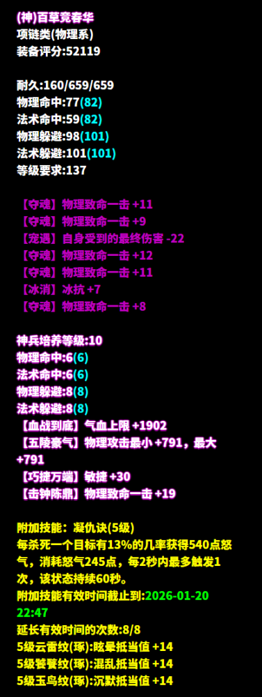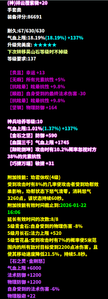 去年年末,有少侠留言说想看金甲的大神 少侠想要,少侠得到 宠侠的倩倩立刻安排! 于是乎—— 历经了一年(不是)的找呀找呀找大神活动 2026年的第一个工作日 倩倩请来的神级金甲堂堂登场! 昵称:宋铮铮゜ 职业:金刚甲士 等级:150级 区服:[神雕侠侣] 帮会:送你一朵小红花 (以下数据来源于更新于梦岛2026.1.4) 逆天三最大+物理命中+物理攻击 +甲士之神+医师职伤的单手刀 蹉跎的大人总是会担忧明天 倩倩就不一样了 倩倩只担心下一秒—— 紫萍,失去你倩倩也没法苟活了啊! 神赐+敏捷+晕抗比+混抗比 目前倩倩晕中少侠的次数是0 刚好是倩倩血条 剩余的血量 七绝无钻+不修+晕抗 再打上五级善根生巩固双防 真正属于你的 应该像吃饭喝水一样简单 于是乎超高防御就这么轻轻地 来到了少侠手上 七绝五物理致命的项链 为什么本倩一遇到少侠就天黑了? 今天是不是根本没有天亮? 什么,你说只是因为倩被少侠打晕了? 倩倩不承认 六绝双晕抗比+所有元素抗比+物防 再装上五级新手套石之灵·金刚怒 进一步巩固双防 倩从小就学会了认字 到今天倩认了十余年的字 就连文言文倩都能轻松理解 但少侠这几条属性真的给倩看力竭了 光是看看就知道倩到时候一定会认输 七绝物理命中+晕抗比+混抗比 +所有元素抗比的腰带 五级腰带石之灵大寂灭抗性拉满 到底是谁在冷落全世界最萌的倩 没关系,队友你怎么样都好倩倩没事的… 等等!少侠是你新的固定队? 那倩倩可要严肃加入了! 晕抗比+混抗比+所有元素抗比+气血 倩倩,不要害怕低谷期 遇到少侠 不就是血条一落落落落落落落千丈嘛 没关系的!至少你努力过了 六绝神赐+四大幅+混抗 倩在和少侠的实力落差中麻木 直到有一天 倩再也不期待 会有能打得过少侠的装备出现 逆天四物理致命+敏捷+晕抗+气血 少侠,那我们就到此为止吧 三界切磋点到为止 主要是再不停 倩倩就要被发配去轮转司了 六绝四物理致命+晕抗比 队友,要我说咱们还是认输吧 咱们老这么蚍蜉撼大树也不是个事儿 何况赛场的空气 好像随着咱们的挣扎越来越稀薄了 六绝三敏+三物理致命 永远到底是什么意思 为什么对倩说这句话的队友都走了 哦哦,原来队友说的是 永远不要和这位少侠1v1啊 七绝四物理致命+力量+气血 对不起少侠,总离你那么远 其实,倩的心也好想再靠近你一点 但是倩倩的血条不允许倩这么做 七绝双物理命中+双物理攻击 +物理致命+甲士职伤的挂饰 同门,你们对少侠说“再也不见” 难道不是在放狠话吗 怎么倩倩却看到你们松了一口气 双混抗比+双抗物理致命+气血的护心镜 你问倩什么是爱情 倩不知道 但如果你问倩什么是好队友 那你和少侠加好友便知 这位150级的金甲大大以正装混抗为主,兼顾一点晕抗元素抗,武器上三最大技能3还带克医的核武不容小觑,再搭配高敏致命首饰,一招精准收割脆皮,相当舒适。 防具方面,无钻不修的金属甲让少侠双防直接顶满,坦度够高。全身再堆叠多个混抗比词条,还带部分晕抗比元素抗比,有效地提高抗性,减少被控时长,自身生存空间得到保障,更好抗下伤害,你就说这样的队友谁能不爱呢~ [编辑:月光下完美]