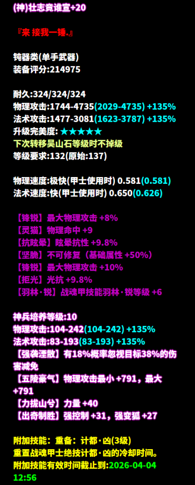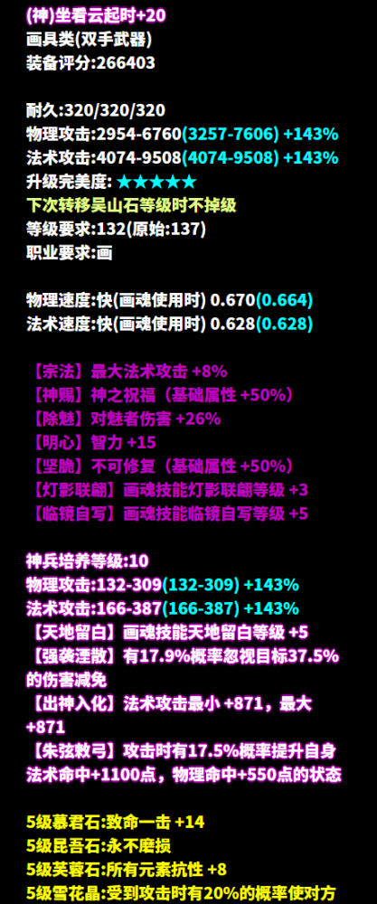 忙碌的周一又到啦!过完这个春节,转眼间倩倩...又比昨天长大了一天!俗话说每个年纪都有每个年纪的挑战,今天倩倩也要勇敢面对新的难题!可为啥大家都是人小小的烦恼也小小的,倩倩就得面对三界少侠的超强核武啊!哪位少侠给倩倩评评理,这些核武是倩倩这个年龄段该经历的吗! (来源:广陵散-′青玄こ ) 逆天双最大+不修+双破盾+射手之魂+物理攻击+刀客职伤 玉石无灵,不能改我结局于是他们问倩为什么倩的眼里常含泪水 因为倩真的没招了 (来源:忆江南-小邪づ) 七绝双不修+最大+攻速+法术致命+天雷诀6 别人问倩喜欢什么样的少侠 我就又要开始形容 用核武给人带来十足安全感的你 (来源:神雕侠侣-~野摩托●) 七绝双最大+不修+物理命中+晕抗比+羽林·锐6 倩倩的队友位始终有一个空缺 倩时常会想 这里如果有一位能带飞全队的少侠就好了 后来倩倩遇到了~野摩托●少侠 也不知道他会不会选中这个位置 (来源:忆江南-oi.呜啦啦丷 ) 七绝神赐+不修+最大+魅者职伤+智力+灯影联翩3+临镜自写5 少侠,谢谢你像阳光一样强势出现在倩倩的生活里 但是倩倩是小脆皮 遇到你哇的一下血条就空了 (来源:独步天下-゛霜降.ゝ ) 七绝三最大+不修+物理致命+攻速 +甲士职伤的双手甲 少侠,你要是真喜欢倩你就直说 没有任何竞争对手打得过你 甚至连倩都支持你 什么?你说你不喜欢倩倩? 不行你必须喜欢 (来源:风华流金-诸事顺遂.丶) 七绝双满最大+不修+敏捷+法术致命+法术命中+画魂之神 队友,不是倩倩不帮你打这位少侠 主要是姥姥刚给倩发消息 让倩不要插手强者的事,好好活着 (来源:兰若词-平生不晚。 ) 三最大+不修+物理致命 有人说倩慢半拍 实则倩是被少侠这把超核揍得很无奈 只能装傻诈队友一手 [编辑:月光下完美]