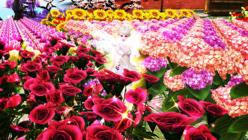搬出仓库晒太阳也能亮瞎眼,如此色彩艳丽的倩女2家园人造花海,你有没有这么多花呢?