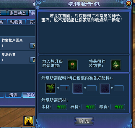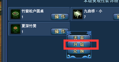 不同的家具升级需要的材料也不同 ,比如潇湘馆就有楠竹、凤尾竹、花竿黄竹、佛肚竹(最低几率的道具) [编辑:蓝月]