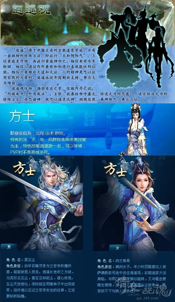 逍遥观-方士 方士与医师并称逍遥二仙。特点:法术远程输出、群伤、穿墙。 方士是主要的团队法术输出。拥有较多的群伤技能。 方士在PVE中一般担任输出的角色。PVP表现在行动灵活,大范围的伤害招式及灵动的身形是其最大的优势,在前期元素抗性较低的情况下其杀伤能力巨大,即使在后期元素抗性都起来的情况下也依然是大规模战役中收人头的大户。 方士是主流输出之一。当然相对于射手来说其输出可能略有不如,但是胜在生存能力强了不少。 仙道无凭,方士从来都不是单挑的类型,如果您热衷于单打独斗,那么您可以再看看别的职业。 综合评价: 日常升级:★★★★ 帮会联赛:★★★★ PVE需求:★★★★ PVP需求:★★★★ 攻击能力:★★★★★ 防御能力:★★★☆ 辅助能力:★★★☆ 控制技能:★★★☆ 操作技巧:★★★★