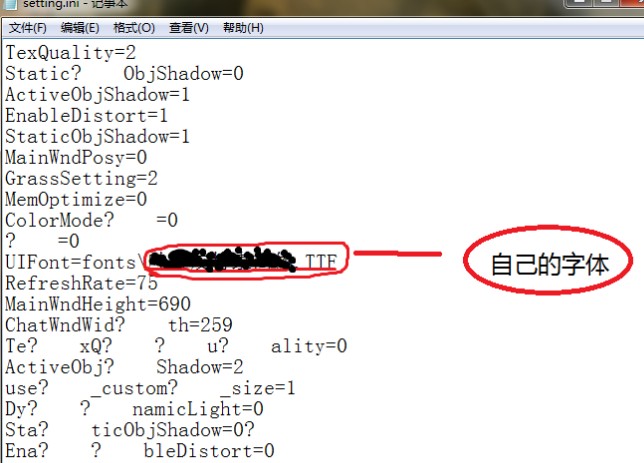 3.找到倩女幽魂安装目录下面的:‘倩女幽魂Online\program’文件夹下面的"setting.ini” 4、打开这个文件:找到UIFont=fonts\*******.***把这个*****.**改为你刚才下载的那个字体的文件名和后缀名保存并退出 5.重启游戏即可 慎重提醒大家 我们修改的那个setting.ini是倩女幽魂客户端的系统配置文件,除了修改一下字体等视觉外观之外,千万不可胡乱修改。 [编辑:蓝月]