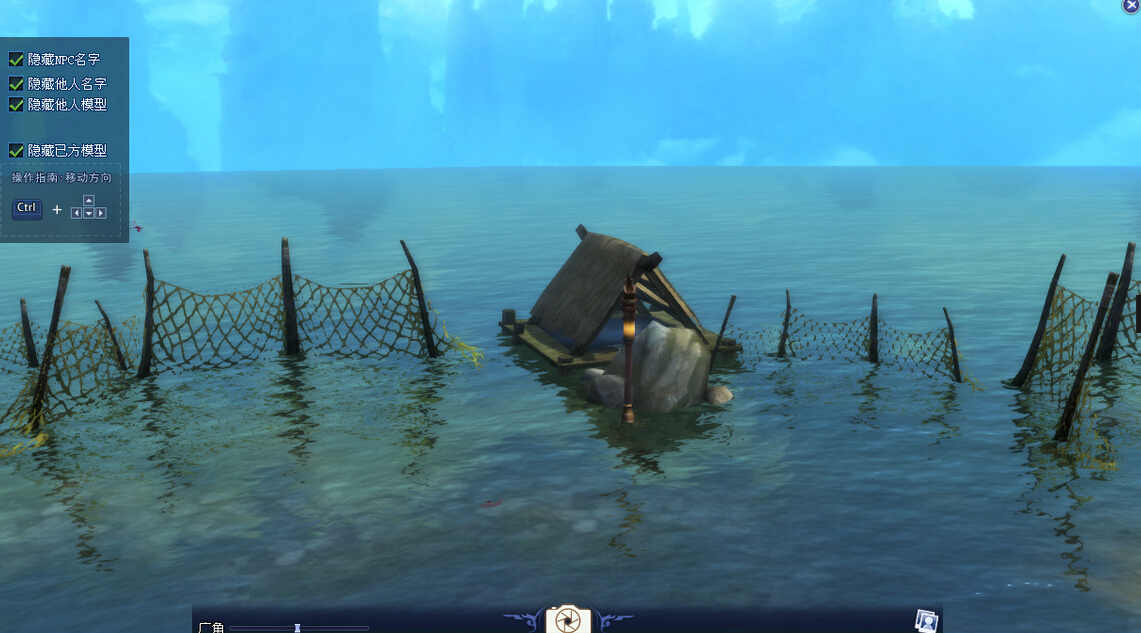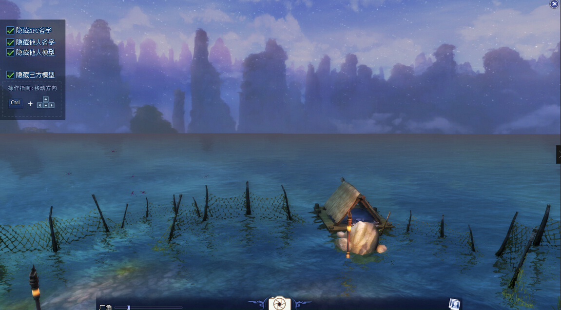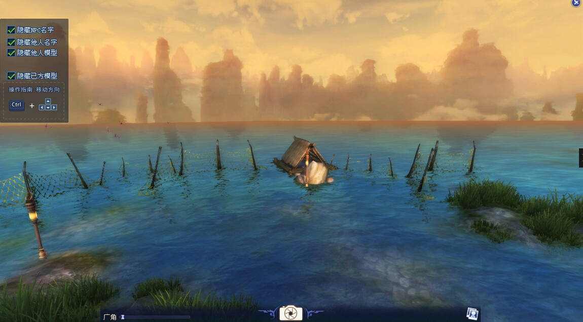 ④在前面第二步的基础上,我们先不屏蔽全部,按Ctrl+PrtSc SysRq。这个时候就会看到一个界面如下: 右上角依旧是选择你所需要的屏蔽掉,然后注意到界面左下角,这个叫广角的就是截美图的秘密武器!将小白点向左拉,就是视距放大,向右则是拉进视距。我们当然选择向左啦! 可以根据自己喜欢拉到喜欢的视距,这个时候有木有觉得下面的杂草有点碍眼? ⑤利用新截图系统调整你的界面中心位置。在界面右上角也有写哦。Ctrl+键盘上下左右想怎么调就怎么调。调到你喜欢的角度!我们不想要杂草当然往上调咯~ 这时候重复第三步的内容,按Ctrl+Alt+PrtSc SysRq 屏蔽掉所有的技能栏、喇叭等一切影响截图的物品!然后再按PrtSc SysRq 键系统便自动截图了!如图下! Duang~这就截出了我们的美图咯! 【觉得天色不一样的小伙伴,这不是后期P哒,是因为游戏的昼夜变化导致的~不同时间不同的颜色哟!】