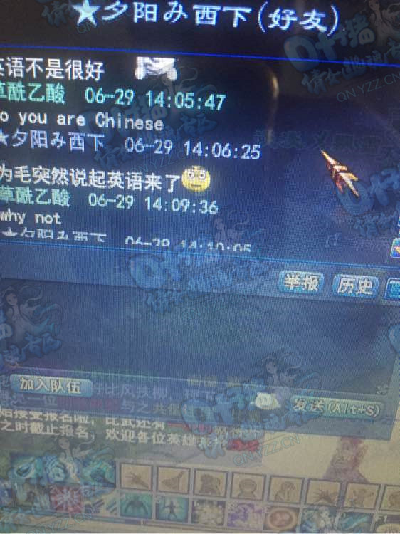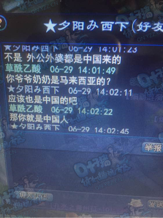 新倩女幽魂中收了个小徒弟,竟然是马来西亚的。 怀着调戏小徒弟的想法,对他进行了一番“爱国主义”思想教育。 政治课圆满结束。 教导小徒弟有功,三十大大给我发了一个爱国奖,爆出来的69级鬼帽子。 徒弟的试卷曝光,那些说我徒弟是假的人过来! 爱国奖后续,三十大大又给发了一把宝匣钥匙! 更多精彩内容,尽在叶子猪倩女幽魂。 [编辑:辰辰]