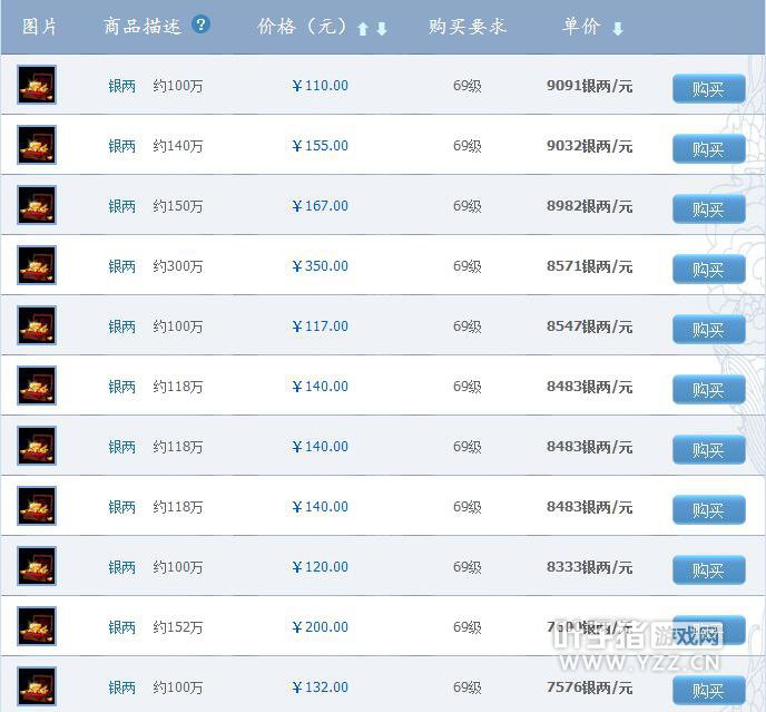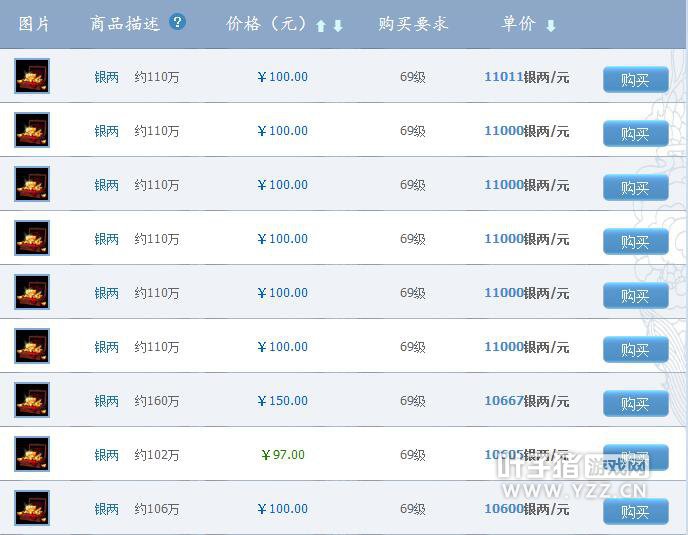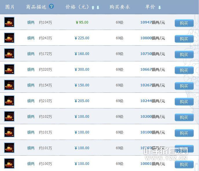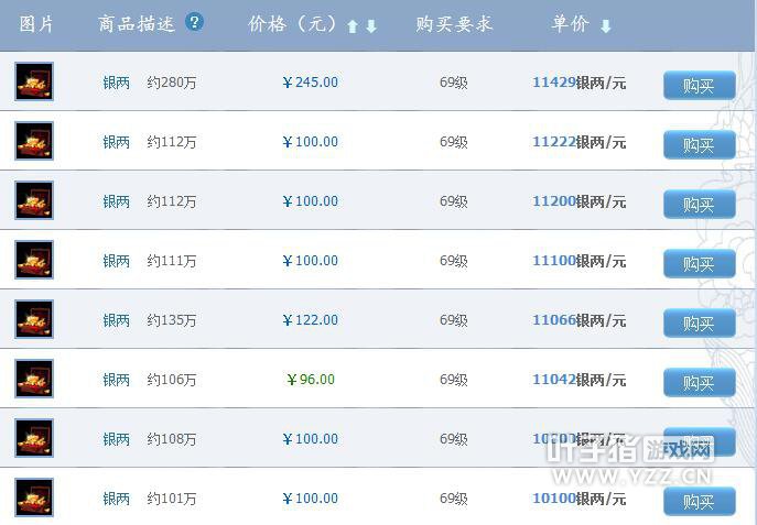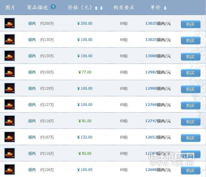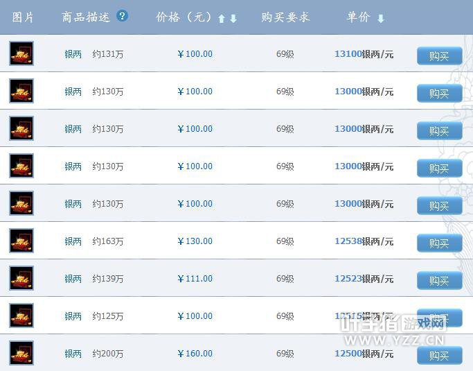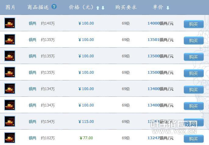 对于每一个进倩女幽魂新区的玩家来说,银两比例是他们最关注的问题。大神希望能买到更多的银子来购买装备,平民玩家则希望能用银两换取更多的元宝来开书强化。7.21开服的新区经过了4天的全民冲级热潮,现在的银两比例又是多少呢?小Z带大家一起来看一下这一批新区的最新银两比例。 长相守作为新区中的第一个服务器,还是非常火爆的,银两比例仅仅只有1:0.8,而且倩女幽魂藏宝阁上的银两还是供不应求。 醉红尘的银两比例已经到了1:1.09,不过看银两寄售的金额并不是十分整齐,应该大多是玩家寄售的,可见这个区的玩家还是较为活跃的。 云水谣用其好听的名字俘获了一大波玩家,成为本次最火爆的新区,银两比例也是在1:0.9上下幅度,据说目前还要排及长的队。就此看来,此区的人气往后也会居高不下的。 凤凰台的银两比例已经高达1:1.1,银两比例很稳定,应该是有固定的打宝队在大量产出银子,适合小资玩家前往。 踏莎行这个新区基本不用排队了,人数也还比较多,银两比例目前还在正常范围内,想要去新区玩又不想排队的玩家,首选此区。 从游芳丛开始,银两比例上涨有些过快,已经达到了1:1.3,可见土豪玩家还是喜欢在最先开的几个服务器。 解语花作为后开的区里面,银两比例还未突破1:1.1的,大概是和区名的受欢迎程度有很大的关系。 连理枝的银两比例已经达到了1:1.31。 梦中人的银两比例已经高达1:1.4,可以预计到不久之后,这个新区的平民玩家可能会因为过高的银两比例而弃服去玩别的新服。 作为最后一个开预约的新服,花影重的人气不高也是意料之中的事情了,银两比例已经高达1:1.7,不久之后就会鬼服了,想要冲新区的玩家还是避免入此区比较好。虽然银两比例高对于打造号来说比较省钱,但是鬼区的无奈小伙伴们都应该懂的。 以上就是今天的倩女幽魂藏宝阁盘点,你了解了吗? 更多精彩内容,尽在叶子猪倩女幽魂。 [编辑:辰辰]