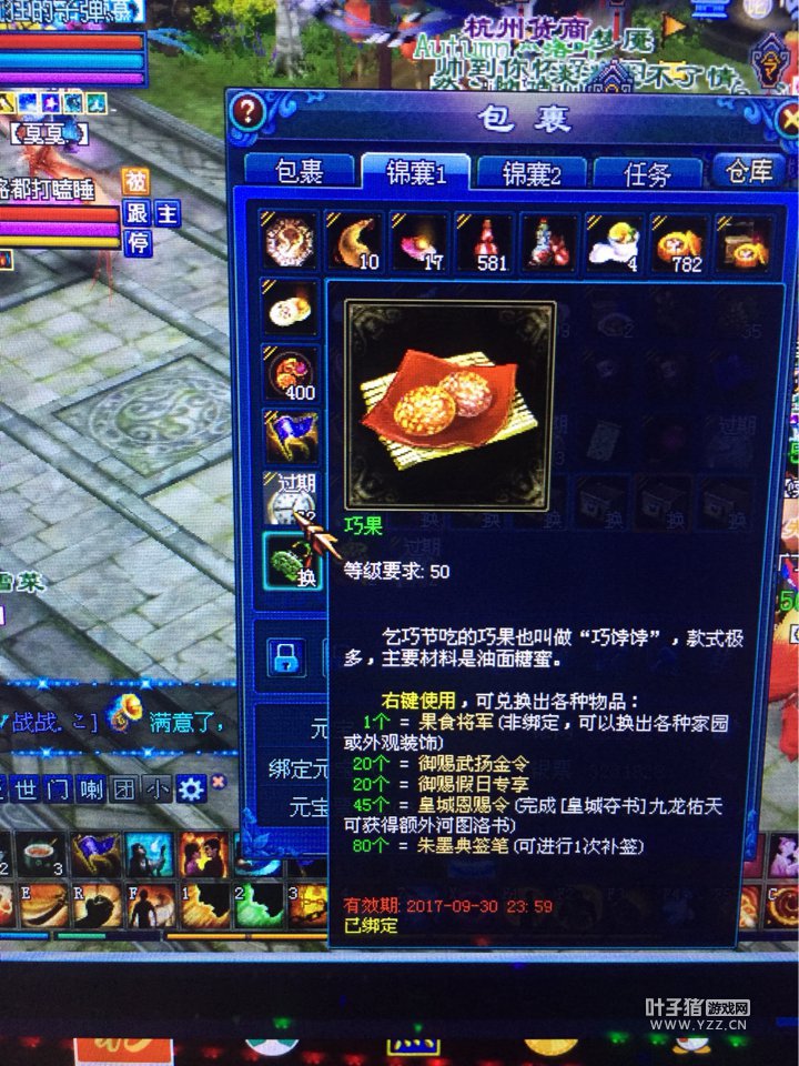 今天登陆倩女幽魂上线打开包裹一看,诶,什么东西过期了,本来以为是御赐武扬金令,正打算扔掉,仔细一看。 不看不知道,一看吓一跳,明明写着2017-9-30 23,:59分过期的巧果居然过期了,一定是我打开的方式不对。 或者我开了假的倩女,算了,我一定是穿越到了未来。 更多精彩内容,尽在叶子猪倩女幽魂。 [编辑:子衿]