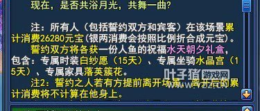 倩女幽魂的誓约之礼仅投放了几个服测试,好多小伙伴都迫不及待了,让我们来先睹为快吧。 这131w可以说是副本开启价了,自定义专属称号最多可以输入8个字,格式为[对方名字]的[自定义]。 戴头饰的小伙伴进去之前请务必摘下头饰哦,不然进去后不显示头纱。带套装翅膀的小伙伴也请先取消哦,不然放动画的时候会暴露出来影响美感。 进去之后,男号会直接出现在中间,等待新娘。女号在入口的一块小沙滩,面前都是海,需要点NPC乘坐贝壳带你游向对岸的新郎。 (图片出自:兔纸花) 新娘到达之后,二人需要在NPC那里拍照合影,拍照成功才能继续仪式。仪式开始,双方并排走的和以前的中式婚礼一样,但是场景非常漂亮,还有流星。 (图片出自:兔纸花) 走到主婚人面前,双方分别写下誓言,然后交换戒指。 (图片出自:兔纸花) 播放动画后仪式结束,但是这个场景有很多非常漂亮细节供大家截图。最右边有个树屋更衣室,可以供宾客们换衣服,伴郎伴娘们可以在那里选时装穿。 (图片出自:兔纸花) 副本出来后可以去三生树领3个纪念品,分别是15天法器、家具、誓约书。 (图片出自:提純的豬油) 好了,重点来了,婚纱那么美,誓约之礼到底送不送时装?答案是:看你表现咯。 全场的主人和宾客在NPC商店消费累计满2W6元宝,两位主人各获得一份礼盒,里面包括时装坐骑还有家具。 (图片出自:提純的豬油) (图片出自:兔纸花) 所以是,喂,我家狗子想要礼盒,你们进来后记得砸钱,不砸钱的一律友尽。 更多精彩内容,尽在叶子猪倩女幽魂。 [编辑:夜雨未柳]