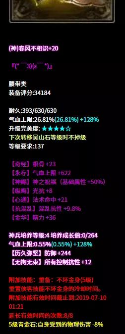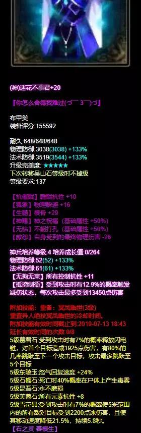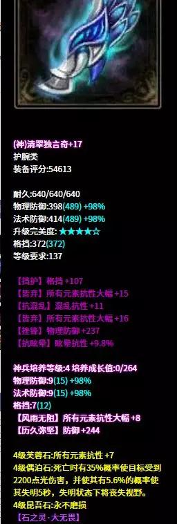 关宁被晕又被混眼看混乱眩晕终于结束了结果发现是关宁结束了 到底怎样才远离晕混的魔爪? 快来和倩倩一起学习这位高晕抗高混抗大大装备配置 昵称:.百花杀ゝ 等级:150级 职业:侠客 服务器: [挑灯看剑] 帮会:°夜澜听雪 (以下数据更新于梦岛2019.11.21) 武器 这把武器的每一条属性相信各位侠客都i了真可谓是侠客的梦想配刀不药而愈+6和天涯比邻+6既能拉人也能解状态让侠客技能发挥到最大作用自带法术命中和眩晕抗更是如虎添翼 布甲 虽然是一件布甲但防御能力实属过硬!六绝双无钻的布甲,基础属性+100%成为钢铁盔甲也不为过!再打上5级石之灵善根生防御值再次加成真是一副战场好皮囊! 布盔 沉默抗百比+元素抗百比+混乱抗的头盔无时无刻不彰显它能抗的实力 在配上5级石之灵观自在想弄乱他的发型?难! 护腕 追求抗性自然是词条越多越好连护腕上都要安排的妥妥当当双大幅+格挡的护腕搭配混抗+晕抗百比赛场上面对控制职业也能轻松应对 手套 晕抗百比+元素抗百比的手套看出大大在抗性上下足功夫 再洗出一条无钻,基础属性+50%真是实打实的无情铁手 腰带 固定神赐+双气血的腰带让这位侠妹的血量更优于人又洗出七绝+混抗百比耐扛耐打,着实让人羡慕! 鞋子 鞋子也要把防眩晕和防混乱进行到底 这么高的眩晕抗值和混乱抗值 刀和魅者要堆多少强混乱强眩晕 才能搞定这位大大?双控制抗的同时还有水抗百分比正装也就能堆很高的水抗了 项链 这条项链和武器不仅同色号而且功能也默契十足不药而愈+5和天涯比邻+5满值混乱抗百比也当然不能落下这样的项链麻烦也给倩倩来一条 手镯 三混抗百比+晕抗百比的这对手镯让人倍感舒适魅者看到也不敢轻易下手 真是个兢兢业业的谨慎侠妹 双混抗百比+混抗 所有元素抗性+元素抗百比的戒指 抗性和元素抗兼备 不怕控也不怕元素攻击 真是雨露均沾的好戒指 目前辅助职业的装备打造路线中 选择全元素抗+混晕抗的大大越来越多 .百花杀ゝ这位大大走的也是晕抗+混抗的路线 还兼顾沉默抗以及各类元素抗性在抗性上下足了功夫侠客作为一个辅助职业在赛场必不可少首先做到自己不被控制 才能发挥更大的增益作用也能更好地起到辅助作用 武器和项链都是有侠客的双技能这样更好地提高技能等级天涯比邻不仅能够控制敌方走位还能解救情况不利的队友高等级的不药而愈解状态更是十分有益队伍胜利的功勋章一定有侠客的一半 大大还见过哪些大神们的犀利装备?可以留言告诉倩倩让倩倩也开开眼界! [编辑:夜雨未柳]