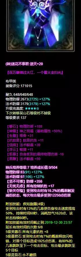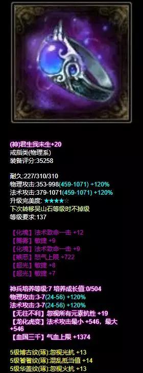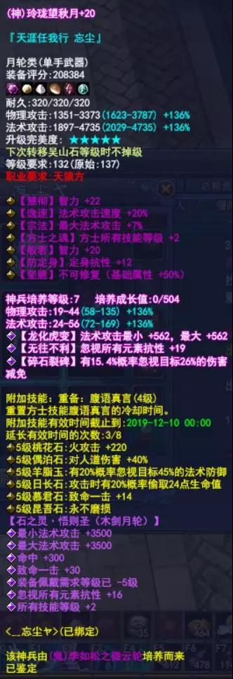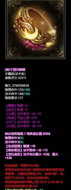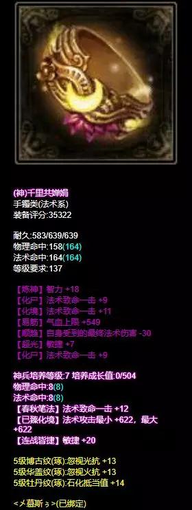 奉劝各位大大在对手中看到天狼 先不要过于激动就决定上去碰一碰 等到变回人形态发现是个惹不起的大神 你可能就和倩倩现在一样… 被失明到找不到方向 下一秒屏幕就已经灰掉 倩倩颤颤巍巍地点开大佬的资料一看 一直在问自己哪里来的勇气上去单挑… 昵称:﹎忘尘ヤ 等级:150级 职业:天狼方士 服务器:[游园惊梦] 帮会:「義」 (以下数据更新于梦岛2019.12.9) 武器 七绝不修+双智力的单手月轮 基础属性+50%,攻击得到提升 打上石之灵五级悟则圣之后 这把小核武的杀伤力可不容小觑 这位大大请把月轮放下 倩倩不被失明的话绝对不会乱跑打扰你 布甲 逆天神赐+双法躲+敏捷+晕抗的布甲 防御能力得到提高 五级善根生能够更好地保驾护航 鉴定技能:疾如旋踵 受攻击时有概率提高自身攻速50% 能够让天狼方士攻速大幅提高更快叠加印记引爆造成伤害 布盔 三敏捷+法躲+晕抗+无钻的布盔 基础属性+50%,防御能力提升 还能让自己在场上更加灵活打上五级观自在 给自己更周全的保护! 护腕 四大幅+格挡的护腕 抵御元素攻击就靠它了! 想要在同门之中成为佼佼者 pk的时候可少不了元素抗性 三级大无畏提高自身减伤和防御 让自己站得更稳! 手套 七绝四敏捷+法术命中+晕抗的手套 敏捷一共增加39 不管冬日寒风有多呼啸 带上它绝对不会冻手更不易失手! 腰带 逆天四法躲+物躲+晕抗的腰带 血量和躲避双管齐下,得到提高 让法术职业尝尝失手的滋味! 这么能躲能跑逍遥观最灵活的天狼就是大大了吧! 鞋子 三敏捷+三法躲的鞋子 在敏捷和法躲之间均衡稳定绝不偏心进可上场用月轮制造伤害 退可化身天狼灵活游走 项链 三致命+双敏捷的项链 让月轮的每一次攻击都带有致命伤害 叠满印记之后引爆伤害 场上最酷炫最爆炸的天狼非你莫属 手镯 六致命+三敏捷的一对手镯 这位大大俨然化身为场上最无情的狼人 打人更准更稳更狠 让人看到就瑟瑟发抖… 看见人群中的天狼可别以为好欺负 见识他的伤害之后就知道不好对付! 戒指 五致命+五敏捷的一对戒指 与手镯走的是相同路线 这是位对致命敏捷都有高追求的狼人! 不仅不易失手并且招招致命 倩倩这次不躲了也不皮了 心甘情愿看着月轮从眼前划过 为大大奉上人头一个 这位天狼方士大大走的是敏捷+致命路线 项链+手镯+戒指都是这两类词条居多 在给对手叠加印记的时候不易失手 且致命提高也能够增加自己的伤害 叠满状态后搭配五级小核武输出也非常可观 提高自身的法躲和元素抗性 在面对同职业以及其他法系输出 也能够丝毫不慌并立马回击! [编辑:夜雨未柳]