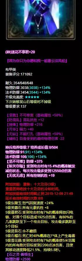 冬天一不留神就容易伤风感冒 倩倩的专属养生医师殷紫萍告诉我 她有一把祖传拂尘扫一下以毒攻毒扫两下药到病除 倩倩一看,果真是件宝贝!速来围观这位150医师的装备治治咱们的柠檬病 昵称:*丶花自飘灬 等级:150级职业:医师服务器:[独步天下]帮会:〆乱世傾城ゞ (以下数据更新于梦岛2019.12.13) 武器 这是一把为奶妈量身定做的扫把护心、悬瓠、破雪三技能+6论解状态,这把扫把没输过!附送甘遂附子+5还能悄悄扔个绿锅盖毒一下对手打上5级石之灵悟则圣让这把扫把更加不平凡 布甲 固定不修+混抗+无钻的六绝布甲很好地为大大保驾护航再打上5级石之灵善根生这防御值,还想对这位奶妹动手倩倩劝你三思而后行! 布盔 混抗百比+沉默抗的双抗帽子还有根骨+水抗百比+法躲每一条属性都非常实用提高抗性提防了魅者面对画魂的攻击同样不掉以轻心颜色不深,但是很稳! 护腕 拥有四大幅的护腕 对擅长元素攻击的输出们来说 实在是太不友好了护腕上的混抗还保留着提高元素抗也提高混抗 给奶妹最全的保护! 手套 神赐六绝手套,基础数值+50% 晕抗、混抗下,还能让自身血量更优 鉴定技能:天蓬错投 变猪的倩倩已经感受到了 来自紫萍的黑色幽默 腰带 自带晕抗+混抗的六绝腰带经大大的欧气之手洗出无钻+气血,基础数值+50%拥有充足血量储备奶队友还不是分分钟的事 双混抗百比+元素抗百比的鞋子 项链 破雪+6、护心+6、魂常+6的项链和扫把一样对技能情有独钟既能解控解状态又能让魂常cd更短配合武器一起用队友只管往前冲 手镯 身为一个奶妹,抗性自然要提高 双晕抗百比+沉默抗百比+沉默抗这对物理系的手镯属性十分优秀到底怎样才能控得住这位大大呢想必此时魅者也很苦恼 戒指 和手镯一起打造的这对戒指 拥有三条晕抗百比词条 不仅晕抗能力满分 连水抗百比+混抗也一应俱全这么令人心动的抗性倩倩何时才能拥有! *丶花自飘灬 大大十分注重对抗性的提高大多数装备都带着双抗词条像鞋子和戒指还带着双抗百比各种抗性都得到提高其中最突出的是混抗与晕抗提高抗性避免被控才能及时给队友补充奶量让队友输出时满满安全感 *丶花自飘灬 大大的拂尘是四技能护心、破雪、悬瓠技能等级都能在一把武器上得到提高武器配合同样优秀的项链使用更佳护心、破雪的等级得到提高不亏是最佳拍档! [编辑:夜雨未柳]