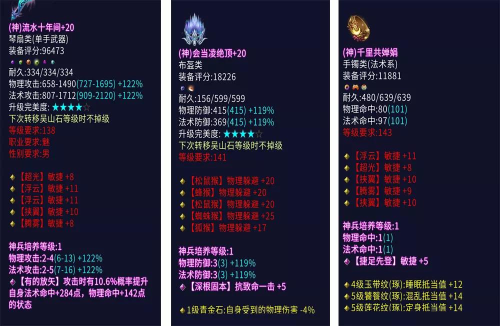 最近这段时间倩倩经常能看到大大们对期末考试的哀叹 而咱们的三界欧气测试这些大大就上赶着交出了他们的答卷 120绝技、三件无钻、六变灵韵蛋......一起来看看大大们的答卷数数他们的欧气都有多高 第1份:打玄女爆星月满空山 (感谢姹紫嫣红 .清清大大邮箱投稿的截图) 第一位大大一定是 被九天玄女赐予了欧气 才能幸运地获得 天狼方士120绝技星月满空山 倩倩要和玄女聊聊天 不奢求欧气大佬们的120绝技 给我一本70级的就好 第2份:秋江爆紫爆绝技 (感谢遇有缘 是柯梦阿大大邮箱投稿的截图) 请问这是秋江boss大放送吗爆紫也就算了 还爆了本120绝技天地留白大大下次刷秋江带带倩倩倩倩只想蹭蹭活力爆紫爆绝技绝不投点! 第3份:连洗三个无钻 (感谢山南大大邮箱投稿的截图) 第三位大大连洗三个无钻的欧气已经让倩倩感到遥不可及但大大并没有没留下无钻大家猜猜大大心仪的属性究竟是什么呢 第4份:四根骨布甲 (感谢瑶台月下妖精"大大邮箱投稿的截图) 看第四位大大这件整整齐齐的四根骨布甲让强迫症的倩倩感到很舒心气血上限加不停穿上它就是穿上了安全感 第5份:清一色五属性红装 (感谢鬼谷子大大邮箱投稿的截图) 第五位大大清一色的整齐红装五敏捷的琴五物躲的布盔五敏捷的手镯 一心一意,绝无二心简直是终极强迫症福音 强迫症治好了心情也愉快了 第6份:六变四星灵韵蛋 (感谢等一个月夜大大邮箱投稿的截图) 第六位大大生蛋的地方一定聚集了天地灵气才能孵出六变四星灵韵蛋倩倩吸一口大大欧气下次生蛋要更努力 以上的这几份欧气答卷 大大们对哪份最满意呢倩倩多收几份大大们的答卷 能不能也成为欧皇 大大们行走三界还见过什么欧气瞬间吗欢迎在评论区留言分享 让我们都来蹭欧气 [编辑:夜雨未柳]