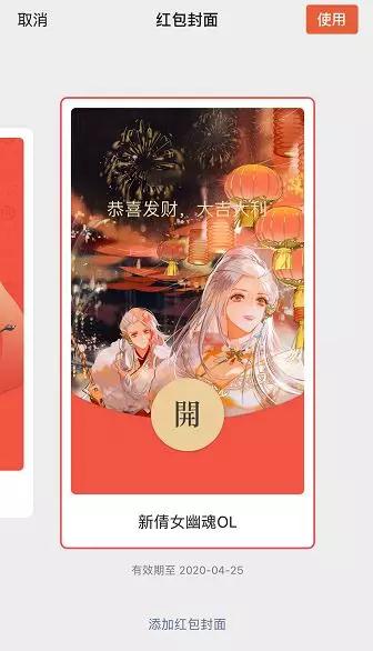 疫情当前,大大们自身要提高警惕预防感染哦,同时可以多加关注湖北地区物资捐赠的资讯,尽绵薄之力燃起他们的希望之火,助力疫情控制共度难关~ 也向所有驰援武汉以及奋战在一线的医护人员致敬!望你们平安回家! 由于疫情蔓延不宜到人流密集地聚集现实生活中也禁止燃放烟火爆竹莫忘尘和纳兰青桑决定大年初一出动在线炸个烟花给你看在家守着手机也可以感受到三界传递来的热闹气氛祝各位大大鼠年大吉,百病不侵~ 新年穿新衣,倩倩悄悄透露——莫忘尘和纳兰青桑身上所着正是下个月的新时装前往官方微博@新倩女幽魂电脑版 可以保存更高清的贺图哟 福利掉落时间 烟花声起,不如许下新年的愿望吧 将本推送卷发到朋友圈 并留下你在三界的新年愿望 将截图发送至倩倩后台 倩倩将选出6位幸运朋友送上三款妖灵御守 (明天公布获奖名单) 今日拜年营业 烟火声成功引起了步临风的注意 他特地来邀请你一起出去看烟花 开门!看看步临风的新立绘! 恭喜在除夕推送中留言的以下6位朋友 获得奖品:天狼团团抱枕一对×6 倩倩将在年后安排发货! 大年初一宜发红包 能让Ta记住你一整年的发红包方式找到了! 点击下方卡片免费领取 领取定制的新倩女幽魂专属微信红包封面 即可将新倩女幽魂定制版红包 在微信聊天中派发给你的亲友 红包封面已领取完微信红包封面(数量有限,没有领到的朋友也可以参加御守的抽奖哦) 微信红包封面设置方法: 第一步:发红包时进入设置 第二步:选择新倩女幽魂封面 [编辑:夜雨未柳]