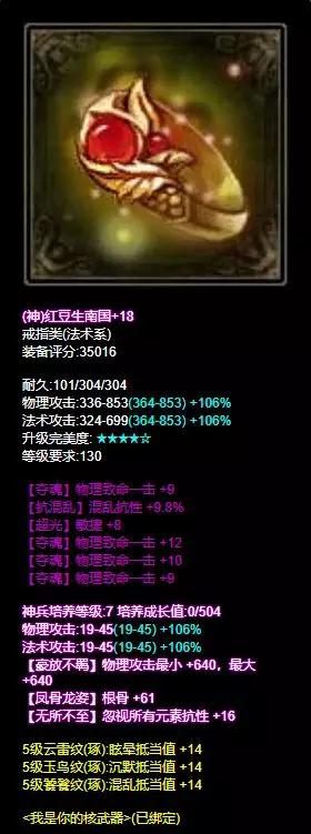 七绝三敏捷+物理命中的手套让giao哥的一招一式都不易失手能够打出更高的伤害在加上一条混抗百比在提高抗性上他可不会跟你胡闹! 腰带 六绝无钻的鬼腰带 基础属性提高50%有高气血的加持让刀客在场上如虎添翼! 鞋子 既然决定走抗性路线 那就要将抗性词条落实在每件装备 鞋子自然也不能放过 混抗百比+晕抗的鞋子 还有根骨+敏捷的锦上添花 走得更稳,输出更狠! 项链 可别小看这一条红项链它的每一条属性都足够优秀!固定双致命+混抗百比经过洗炼得到关山千叠+4有输出有抗性每个关山都带有致命! 手镯 五致命+力量+敏捷的一对手镯还有混抗百比+晕抗百比保驾护航 既有致命,又兼顾抗性 这位刀客这么高的抗性各位魅者们要不要考虑先走一步?他招招带着致命的关山真的恐怖! 戒指 七致命+敏捷+力量的一对戒指 在暴力输出上也不能轻易服输高致命+敏捷更易爆炸输出 giao哥堆抗性从不开玩笑 戒指也不能落下一条抗性词条混抗百比+晕抗的加持 让他在场上有更多空间输出! 控归控,闹归闹可千万别拿这位断刀Giao哥メ的抗性开玩笑他走的是抗性+致命的路线几乎全身装备都带混抗百比和晕抗百比能够在单挑和切磋时都不易受控制技能的限制能够给自己争取更大的输出空间 这位抗性超高的断刀输出也不落下首饰不仅有抗性更有致命搭配七绝双最大+神赐的武器让他的技能打出更高伤害! [编辑:夜雨未柳]