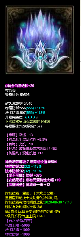 关宁战场开始后 倩倩全力冲往对面大本营 正准备大干一场的时候 嗯?怎么不受控制了? 原来今天又是个被魅者拿捏的日子 此时一位漂亮奶妹路过,红扫把一挥被封印原地的倩倩又能够活蹦乱跳了 这么优秀的奶妹 必须得研究一下她的装备才行 昵称:蕾宝贝`等级:129级职业:医师服务器:[游园惊梦]帮会:落雨未央 (以下数据更新于梦岛2020.8.21) ![]() 武器 ![]() 这把扫把太让人眼馋了护心胆+6和益气安魂+6一手解控一手加血还有晕抗百分比的加持 再搭配石之灵悟则圣提高属性解控和奶人都非常优秀~ 布甲 固定轻鸿+不修的六绝布甲不仅让基础属性提高了50% 还能打上五级善根生再加上三根骨+晕抗保护血量和抗性都能兼顾任你如何输出,大大都岿然不动 布盔 ![]() 混抗百比+混抗的布盔还有固定轻鸿打上5级观自在抗性、防御、气血全都不缺 附加技能重备:十大功劳关键时刻大大又能救队友于水火之中 护腕 ![]() 有了这件七绝四大幅的护腕元素抗性得到大幅度提升再搭配晕抗+格挡 打上石之灵大无畏抗性和防御都十分到位 手套 129的鬼手套同时洗出逆天+神赐 气血值得到了飞跃提升 攒多少欧气才能让逆天无钻同时出现?大大就是欧皇本人了 腰带 ![]() 129七绝神赐的鬼腰带基础属性+50%血量和抗性都得到了提高在战斗中能站的更稳 鞋子 这双混抗百比+晕抗的鞋子 让大大的抗性更上一层楼穿上这双鞋,走路都带风 ![]() 虽然这是一条三心二意的项链 但是胜在它还有几分乖巧懂事 固定晕抗比+护心6+益气5配合扫把一起使用这就是一条让倩倩羡慕的好项链 手镯 这对手镯十分优秀双混抗百比+沉默抗百比+混抗两种抗性都安排到位 在抗性拥有一定基础的条件下每条抗性百比增加的效果都非常可观这么高的抗性魅者看了都流泪 戒指 这对戒指倩倩慕了 一个混抗+沉默抗双8.6%一个晕抗+沉默抗双9.8%同时还有水抗的加持不知道大大花了多大的努力才打造到这套超高抗性的首饰呢? ![]() 这位奶妹拥有着护心+益气双6的扫把还搭配了同样双技能的项链拥有70级解控的同时还堆出了非常高等级的益气解控加血一气呵成身上多件装备都有双抗的加持抗性十分优秀四大幅的护腕还兼顾了元素抗性 大大的气血和防御也十分优秀手套逆天神赐、腰带七绝神赐还有布甲上也有50%加成血防过硬,抗性充足 站的稳当才能更好的保护队友 [编辑:夜雨未柳]