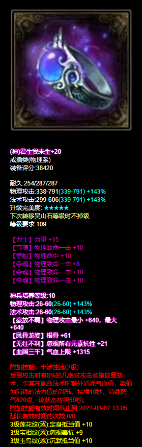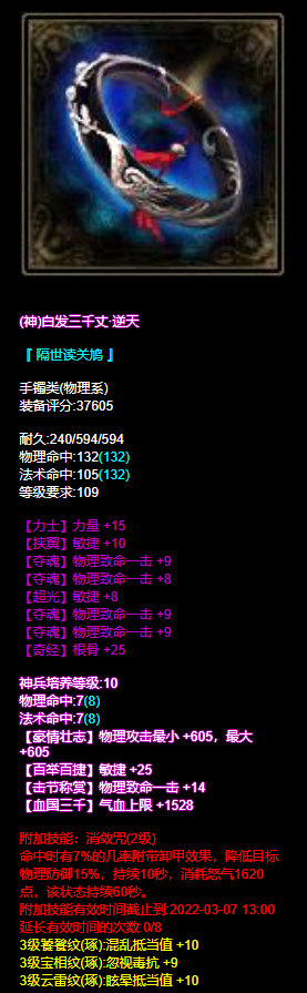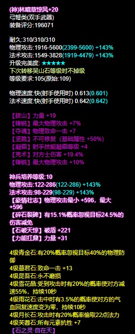 首届天地群雄赛入围赛今晚正式开打! 3月25日-27日20:00 每晚两场入围战 少侠们千万不要错过啦 游戏内赛况猜想同步开启哦! 倩倩今天上关宁 遇上一位高法躲高敏捷高致命的射手大大 当时场面一度失控,满屏的失手 倩倩直接带上痛苦面具 大家随意,反正倩倩已经摆烂了 打开这位射爷的装备栏 是倩倩最后的倔强 这让倩倩毫无还手之力的装备是怎样的? 快来和倩倩一起先睹为快吧! ▼ 昵称:养一只波斯 等级:109级 职业:射手 服务器:[神雕侠侣] 帮会:°与时光终老べ (以下数据更新于梦岛2022.03.21) 这把固定最大+不修+物理致命的双手弓弩 洗出七绝双最大+方士职伤 再搭配上石之灵·自在天 令大大的输出更加爆炸 这件固定法躲+不修的七绝皮甲 不修提升基础属性50% 又洗出轻鸿-5,佩戴等级降低 搭配石之灵·善根生 大大站的越稳,输出才能越狠 这顶固定四法躲的布盔 又洗出六绝六法躲 看着这整整齐齐的六条法躲 倩倩就是想问一下 真的有法术系遇到大大能不满屏失手吗 固定三敏捷+抗物理致命的手套 洗出了六绝五敏捷 流泪了,倩倩真的摸不到大大的衣角呀 这双固定三法躲+敏捷的鞋子 洗出六绝五法躲 命中躲避都得到兼顾 倩倩看了实名羡慕了 这条固定双法躲+无钻的腰带 还洗出七绝四法躲 倩倩见了直说:溜了溜了 这条固定物理致命+敏捷的项链 抽出蝎尾+5+力量 又洗出六绝双敏捷+物理命中 倩倩站在他面前 口是心非地说不害怕 这对手镯有整整九条物理致命+双敏捷 高伤害的同时,还保证了一定的敏捷 反正倩倩已经体会到被一击带走的痛苦了 这对戒指共有八条物理致命+敏捷+物理命中 大大用上这戒指输出起来让倩倩更痛 大大您看倩倩躺平的姿势够标准了吗 这位非常罕见的109级射手大大,还是彩光!! 走的是法躲+高物理致命的物理系输出标准路线 强迫症福音的六法躲布盔 以及其余高法躲防具 手套则有五敏捷 不修皮甲和神赐腰带的加持 让大大完美4+4的同时血防也有保证 虽然看到大大还在洗战甲的武器 不过目前的109射手也确实令人惊讶! 而首饰则主要以致命+敏捷为主 有着极高物理致命的一对手镯和戒指 射手核心技能蝎尾等级+5的项链 再带上双最大+不修的武器 令大大在战场上杀伤力爆炸 倩倩提醒:欣赏大大装备的同时 也别忘了今晚开打的天地群雄赛入围赛呀 ▼首届天地群雄赛入围赛开启 [编辑:嫆之]