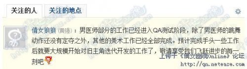 《倩女幽魂》主美工狼哥爆料:男医师即将出炉。