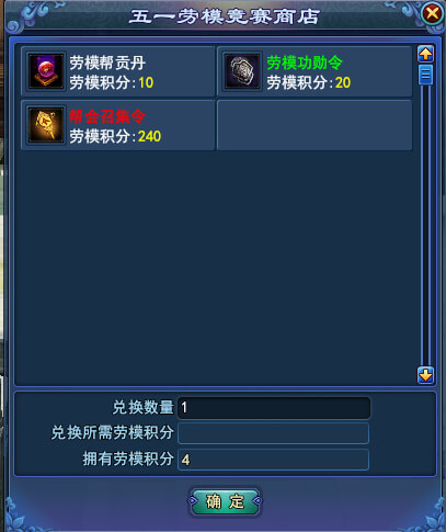 劳模帮会竞赛 活动背景 过去一年里每个帮会都为大明的繁荣做出了突出的贡献,而每个帮会的发展又离不开每个成员的努力。值此佳节,皇帝颁发圣旨,在五一期间各帮会进行劳模PK评选大赛,让各个帮会一较高下。 活动时间 全服开放:2017年4月28日0:00至5月2日23:59 参与条件 有帮会的玩家均可参与(包括帮会学徒)。 活动流程 活动期间,帮会成员每次完成帮会任务(战龙、卧虎、巧燕、商侩)都可以为帮会增加一定数额的积分,部分任务完成一轮有额外加分。每日积分超过20分的玩家,可至帮会总管处领取当日添砖加瓦礼包一份。当天帮会总积分增加超过500分的帮会,帮会成员当日均可领取劳模帮会嘉奖礼包一份。每位玩家每日最多可以获得200积分,积分可在帮会总管柴廷宾处打开劳模积分商店兑换帮贡、功勋或帮会召集令。 全服开放后,活动结束将进行根据帮会劳模积分排名,每个服务器积分第一帮会成员可以领取有效期7天的称号“四时终岁常辛勤”,佩戴称号可获得幸运+10效果;积分第二帮会成员可以领取有效期7天的称号“诸事躬亲勤修”,佩戴称号可获得幸运+7效果;积分第三帮会成员可以领取有效期7天的称号“辛勤风波事”,佩戴称号可获得幸运+5效果。 全服开放期间,积分将在活动结束后5月3日23:59分清零,称号请在积分清零前领取。请玩家注意时间。