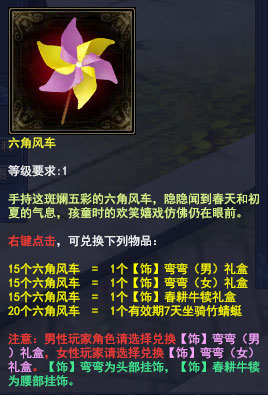 六角风车可以兑换五一特殊挂饰: 更多精彩资讯,尽在叶子猪倩女幽魂。 [编辑:辰辰]
