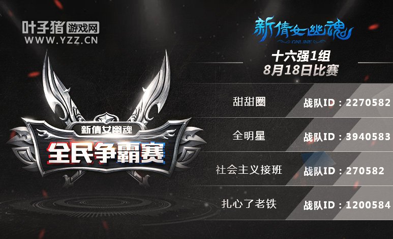 新倩女幽魂首届全民争霸赛,16强名单出炉。