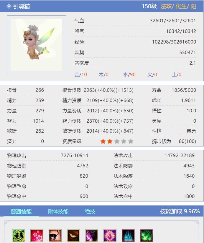 ![]() 第七只 来自广陵散的异人今天你绿了没,忠心引魂猫,功能性出战,照肝胆挡危劫、蚀甲解混玉壶冰 绝对的辅助出战,毕竟异人宝宝多,不差这一个输出,顺便提一句题外话,异人想要减速技能,有2个方法,1,雪花晶。2,灵兽技能雨木冰 玉壶冰 冰魂雪魄。 总结 如果梦岛的显示数据没有问题的话,小编只能说以前的极品白猫实在是太多了,基本上都是白猫培养过来的。不过这次小编找到的大神们出战基本都是法攻类型的,血宠在大神的选择中并不多见,莫非是因为白猫比较多的原因?? 更多精彩牛图,尽在叶子猪倩女幽魂。 [编辑:犀利摇]