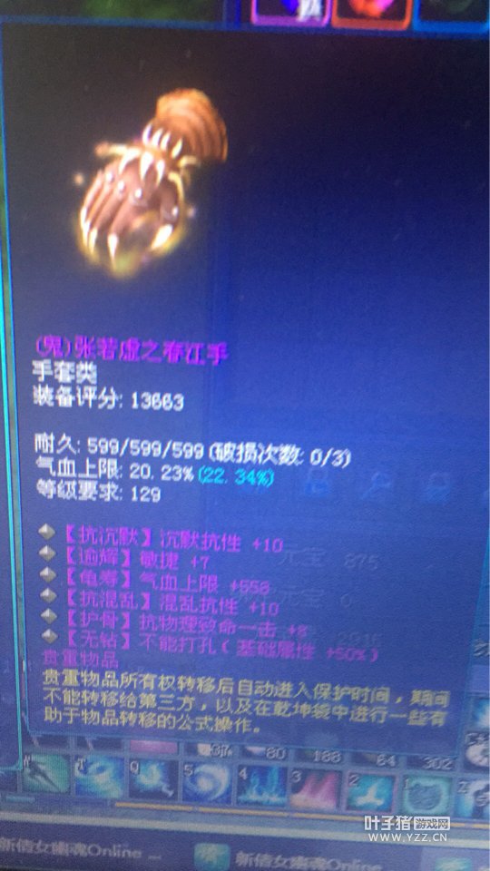 自从倩女幽魂更新了新的河伯副本以后,人人都说都说副本大,不好打怪,爆的藏宝图又少,所以我已经把新河伯当成了刷活力的副本了,毕竟我只是一个连幸运都没有的方士。今天闲着没事做去打个新河伯副本,随手开个箱子,居然开出了一个6绝无钻的鬼手套! 更多精彩内容,尽在叶子猪倩女幽魂。 [编辑:子衿]