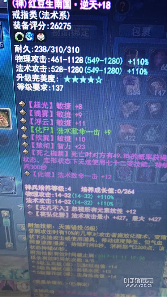 在2017年10月19日倩女幽魂更新中为方便玩家更直观地看到装备词条抽冰置换的情况,抽冰置换出的那条词条将变色显示。比如这个直观的让我看到了一个冰下去,气血恢复速度变成法术致命一击!属性就成了固定三敏捷加法术致命一击,戒指就是逆天4敏捷加双法术致命一击,瞬间变神器! 更多精彩内容,尽在叶子猪倩女幽魂。 [编辑:子衿]