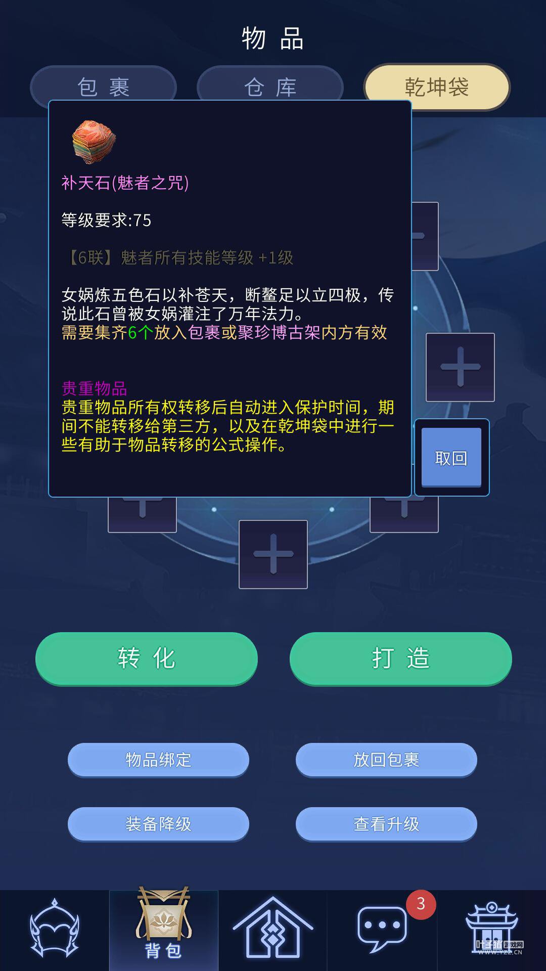倩女幽魂中通过乾坤袋可以做许多事情,比如说转钟,可以转出高级的法宝,幸运法宝,还能转出补天石。一位玩家准备了混元金斗朱砂准备开始转钟,但是没想到第一个朱砂就转出了魅者补天,运气这么好,这是接着转呢?还是接着转? 更多精彩内容,尽在叶子猪倩女幽魂。 [编辑:子衿]