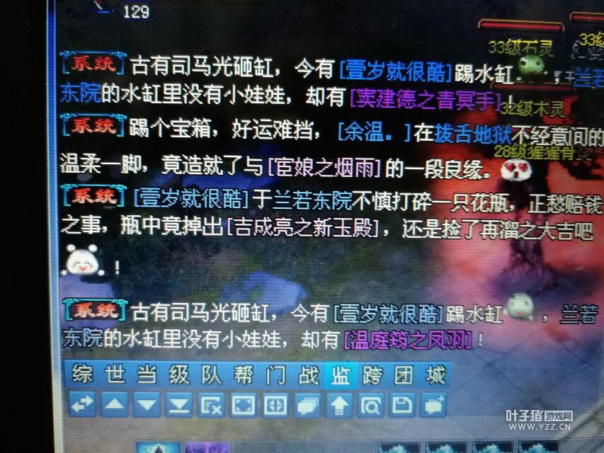 倩女幽魂中野外会刷新一些水缸,花瓶,棺材,宝箱之内的物品,玩家可以选中之后踢开,可以获得装备,运气好能踢出鬼紫呢!在倩女中,一切皆有可能,这位玩家在兰若寺东院踢花瓶水缸,没想到在一个地图里就踢出来三个粉装! 点击查询倩女幽魂一掌山河图坐标,更多精彩内容,尽在叶子猪倩女幽魂。 [编辑:子衿]