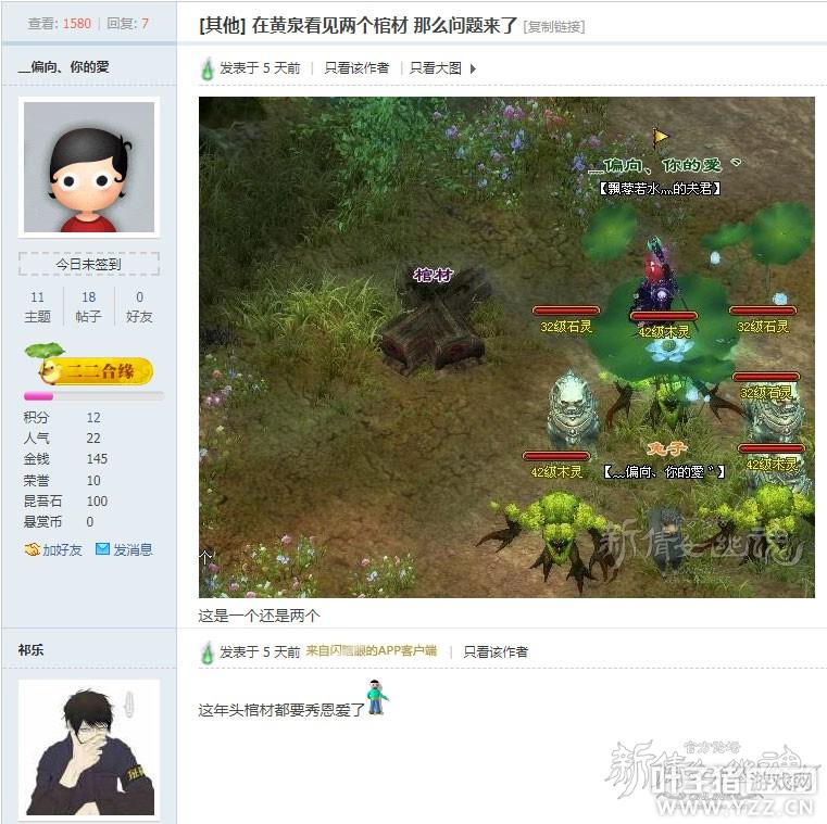 开绝技也能连斩 连出两本大绝技,心态有点炸裂了,究竟怎么样才能做到这样的连斩呢? 网易惊现亲生神拖 这位打着“我是网易亲生”旗号的倩友,让我看到你挥动的双脚好吗?能踢出这个丰硕的结果,勤洗脚是必须的了。大家跟我一起学,发财就指望大保健了。 你满意了,我们很不满意。这个功劳不应该给GM啊,也许也有本安的呢 为啥我只能爆鬼 怪里怪气的,举报了举报了。没见过这种炫耀模式的,那那种粉都不爆的找谁说理去?找我吗?找我有用吗?你们信我吗?也许可以呢…… 棺材也能秀恩爱 要给这样的棺材配上解说,一开始我是拒绝的,毕竟谁能接受连两个棺材在一起都开始秀恩爱了呢?但是想想,我们还可以踢开他们,然而如果是真人,我们就不能……所以……请大力给它们一脚 炫酷的家族名 好酷炫的家族名,你们家还招小姐妹吗?我也给自己取了个“(腿)毛都被(蝴蝶)飘没了”自我感觉很好,一定是你们家族的小族长了 更多精彩内容,尽在叶子猪倩女幽魂。 [编辑:辰辰]