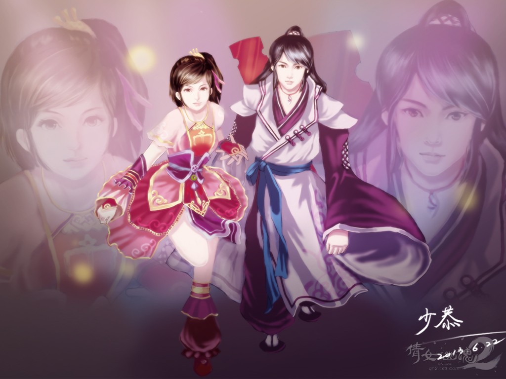 官方CP男魅冷月心X女刀杨梦言,玩家倾情手绘,青梅竹马什么的最美好了XD。