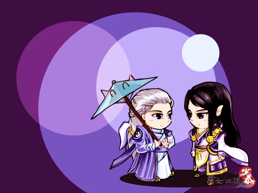 倩女幽魂2原创壁纸:Q版男医男魅和女射手桌面