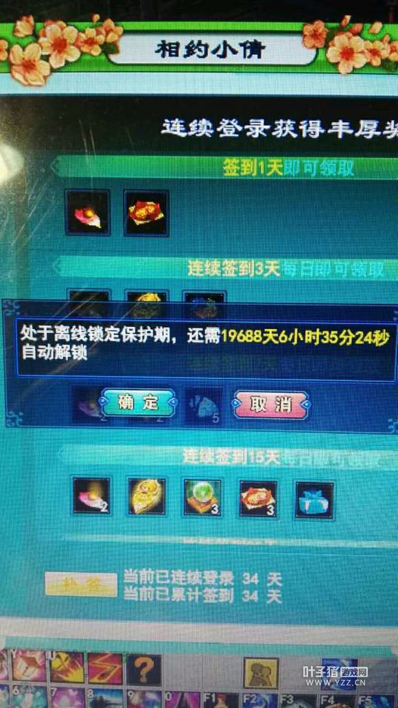 倩女幽魂为了保护玩家账号安全,玩家在退出游戏时,可以在退出提示窗口上选择使用离线安全锁。离线安全锁最短可以设置1分钟,最长可以设置30天。设定离线安全锁成功后,玩家无法通过游戏中的操作解除,设定后也不可以提前解除。 然而有一位玩家上号签到时,莫名其妙的发现自己被离线安全锁了近2万天,不知道这位玩家坚持到那个时候吗? 更多精彩内容,尽在叶子猪倩女幽魂。 [编辑:子衿]