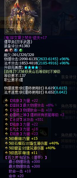 作为对装备修炼要求极高的职业,偃师虽然强力但是仍然稀少,新区也有不少新的偃师已经开始成长,他们的神兵代表着的就是偃师的未来。 >>>>>为了控人也蛮拼:骚魅们的敏捷强控首饰秀 >>>>>不科学的紫装:抗性神器之双百分比晕抗帽子 >>>>>神兵继续增长中:倩女画魂30W小神武器秀