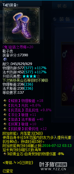 是要抗性还是要躲避,在跨服一战场里,控制职业命中普遍都高,许多输出们也都放弃了躲避路线,该走了抗性路线,毕竟抗性是实的,多一点抗性就能少一点控制时间,给奶妈缓解一些压力。而在九州月都江堰,抗性装输出也应时而生,接下来我们就来看看大神的逆天抗性装备吧!