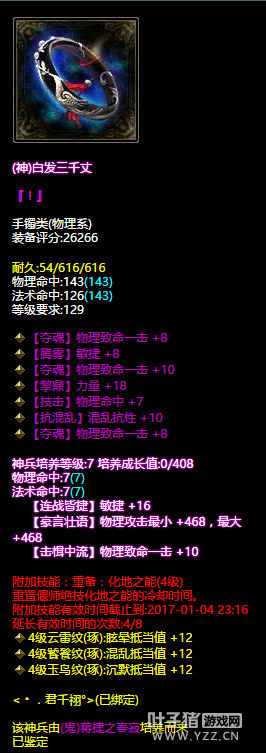 今天小编为大家带来的是乱世英雄的129偃师君千羽装备秀。55W评分在129不能算是很高,但是君千羽走的是物理法躲流,背包满补天,正装法躲2000+,物理命中1700.
