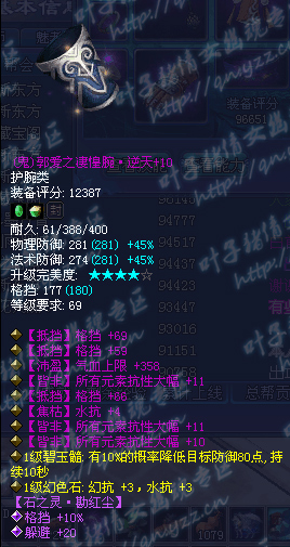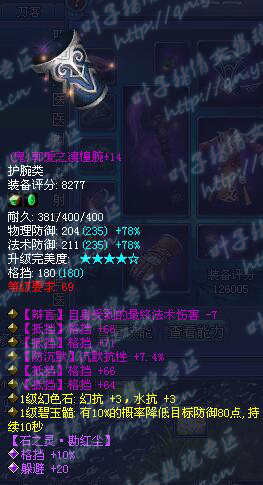 逆天3格挡3大幅的护腕,还好只是69 你们说打菩提心还是大无畏好。