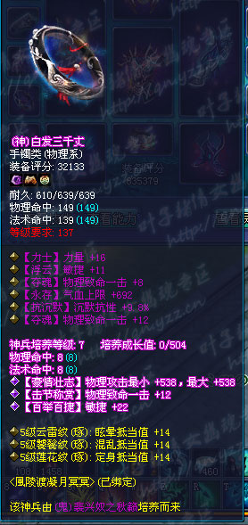 潇湘的一主力,在装备评分上达到83.5万的评分的西子湖第一断恨刀客风凌渡凝月冥冥装备鉴赏! 三最大核武器配合五级悟则圣你能扛得住几刀? 逆天不可修善根生石之灵衣服。 三大幅双格挡大无畏护腕 带有刀客之神属性的项链 神赐手套双抗性 逆天3法躲健身腰带 4法躲鞋子 双致命双敏捷手镯 双致命手镯 三致命戒指 三致命戒指 不知道在潇湘和暖心的旷世大战中此号的下一步打造是什么呢?一起期待吧 了解更多相关信息,请继续关注叶子猪倩女幽魂哦! [编辑:犀利摇]
