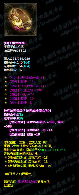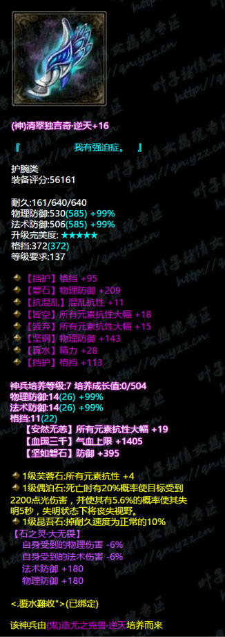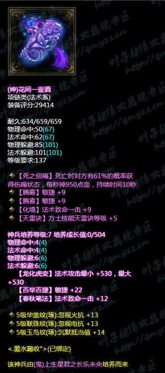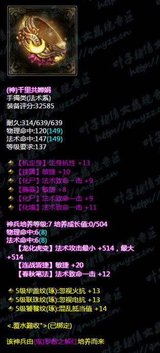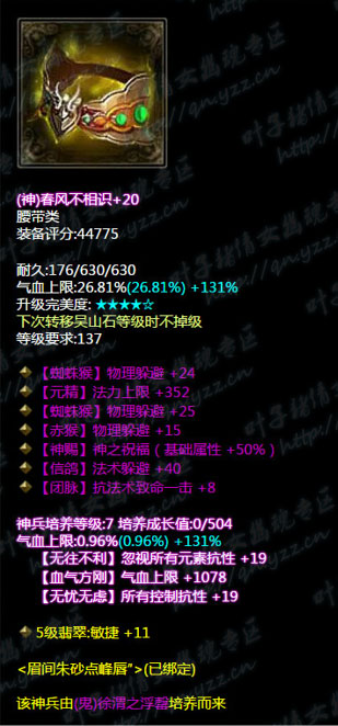 【叶子猪倩女幽魂原创专稿,未经授权禁止转载。如有雷同,都是搬我们的。】 西子湖第一方眉间朱砂点峰唇″有着86.2万评分同时也是西子湖方士首席,那么接下来我们就看一下他是怎么搭配自己的装备的吧。 小编点评: 1、首先我们先来看武器,七绝双最大,培养属性带有忽视所有抗性+18(我们都知道方士打人是元素攻击单体的是天雷地火诀,所以忽视所有抗性是很有用的) 2、我们来看头盔和护腕类:头盔是4敏捷单法躲眩晕抗性+11属性,神兵培养属性带有抗致命一击+12,所有元素抗性大幅+19;护腕是双格挡双大幅混乱抗性+11.神兵培养属性有所有元素大幅+19.综合来看两类的装备是互相照应,头盔带有的比较方士的属性有晕抗敏捷法躲,元素抗性大幅而护腕则是格挡混乱抗性以及元素大幅。在一个衡量的度上做到了平衡,也就是说两者装备的搭配上做到一个衡量度 3、衣服类则并是双敏捷单物躲不可修属性,培养属性带有所有控制抗性+17。敏捷度不是很高而且带有物理减伤效果。看起来所有的装备都是围绕着衣服的主属性来考虑的我们接着看 4、我们来看下三件:腰带是三物理躲避单法躲抗致命一击的神赐腰带,带培养属性忽视所有元素抗性+19,所有控制抗性+19.相反大多数方士在腰带的抽冰上都会选择法躲主流,而大神则选择物躲照应一下衣服的缺乏属性。手套则是三敏捷风抗减法伤混乱抗性神赐腰带,培养属性带22敏捷照应着混乱的抗性护腕类,同时减法伤照应衣服的减物伤。鞋子则是五敏捷鞋子,培养属性带所有元素抗性大幅+19照应着护腕。换装的腰带则是双火抗比单电抗比的腰带。 5、项链类则是眩晕抗性比+雷火的换装项链。 不足之处:换装的属性如果能跟主装结合一下就好了。另外大神的逆天装只有一个,如果多几个逆天大神打造号以后的数值会更提高,也会更逆天 在看完这些搭配后,我相信1米6的同志们都学会了怎样去搭配自己的装备了吧?更多精彩牛图,尽在叶子猪倩女幽魂。 [编辑:犀利摇]