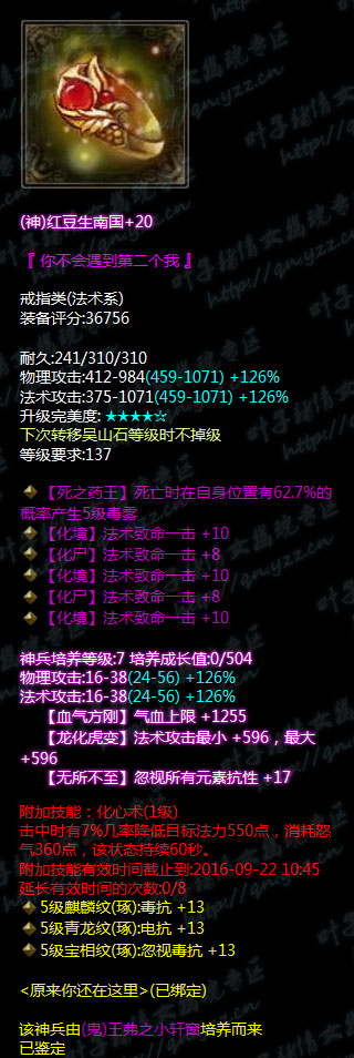 【叶子猪倩女幽魂原创专稿,未经授权禁止转载。如有雷同,都是搬我们的。】 医生通常给我们的感觉就是人群中放一个悬壶济世技能,给团队添加增益状态的作用。 强力的奶甚至可以撑起团队的一片天。 今天倩女牛人榜的主角就是来西子湖第一奶妈——原来你还在这里。看看一个集抗性、气血、防御、输出于一身的大神奶妈,如何在烽烟四起的江湖中悬壶济世。 叶子猪新增牛人榜栏目,点击即可查看大神装备点评! 武器:六绝三最大眩晕抗性+11武器。带五级悟则圣。神兵培养属性带有碎石裂碑的属性。只能说这把鸡毛掸子真的是逆天了,三最大加医师之神属性本就是梦寐以求的属性再配合眩晕抗性+11,的确是在其他的装备上抽抗性类属性减少了不少功夫。附加技能老僧入定4级。 衣服:双不可修,睡眠抗性+12衣服,神兵培养属性所有控制抗性+18.附带重置十大功劳技能。双不可修还好不是逆天,不然这衣服穿上真的是暖暖的安全感。同时我们也可以想到此奶妈甚至可以当一个输出来看待,也可以当一个奶妈甲,在衣服的打造上也是用到了抗性。 头盔:双法躲,单物躲神赐混乱抗性头盔。混乱抗性照应着武器的眩晕抗性,而且神兵培养的属性带有所有元素抗性大幅,应该是以盾牌的数值不够需要别的装备增加来打造的。 护腕:三大幅 双混乱抗性比双物防护腕。另外神兵培养还带有一个大幅,也就是4大幅护腕。堪称逆天,而且混乱抗性比增加的也是很多。 手套:眩晕抗性,混乱抗性共存。双神赐手套。单敏捷配合神兵培养的敏捷度,在敏捷上也是不缺乏。另外值得一提的是逆天双神赐加的气血值。 腰带:七绝神赐无钻腰带。带混乱抗性,神兵培养属性有所有控制抗性+18。看起来大神的混乱抗性值应该是非常高的。 鞋子:逆天五钻鞋子。看到此鞋子的属性还是蛮乱的。这样就是以一件下三件装备补属性的做法。同时下三件的装备打造传统打法也就是这一种。 项链:沉默抗性+12.所有元素攻击+491,双致命项链。 戒指类:作为首饰类戒指通常的打法是要致命敏捷。此装备也是如此。但是值得一提的是两个戒指中有一个5致命的戒指堪称逆天。而且很有意思的看到戒指的时候神兵培养属性都是忽视元素抗性。 手镯类:沉默抗性+10致命敏捷传统的输出属性。 护心镜:所有元素抗性比+百分之4.眩晕抗性比+9.8%。 总体来说:装备是以输出抗性类结合打造。各装备的属性以及附加技能都可以说是堪称完美。尤其是在抗性类装备的选择上大多数选择抗性比。着实是一亮点。 [编辑:犀利摇]